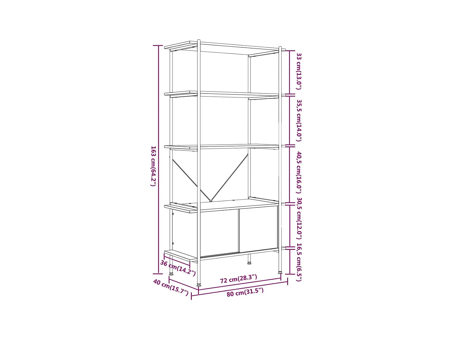 Étagère à 5 niveaux armoire 80x40x163cm Acier bois d'ingénierie