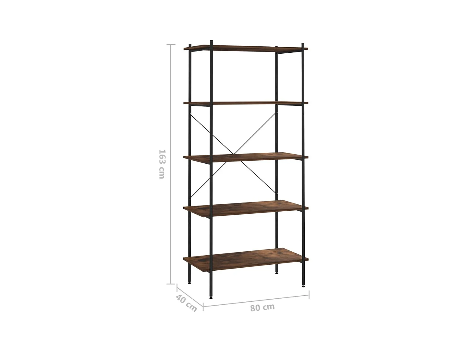 Étagère à 5 niveaux noir et naturel 80x40x163 cm