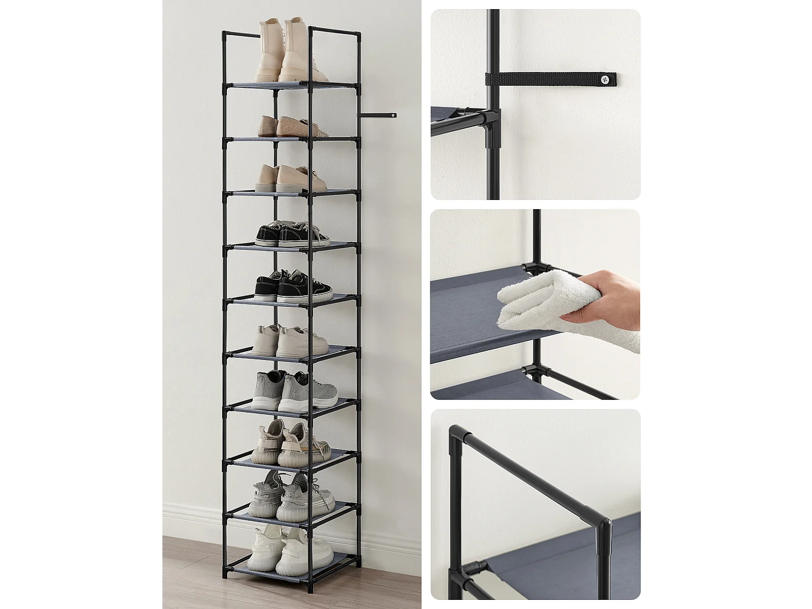Étagère à chaussures 33x33x173 cm gris