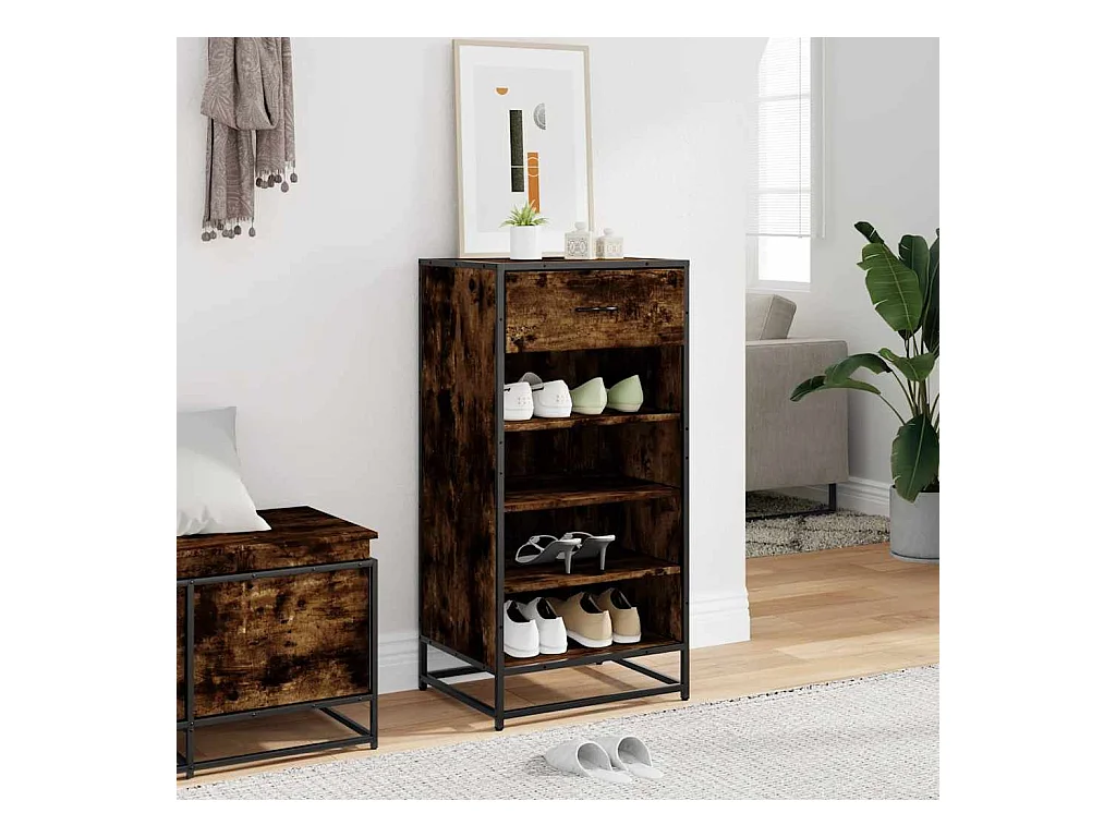 Étagère à chaussures chêne fumé 48x38x97,5 cm bois d'ingénierie