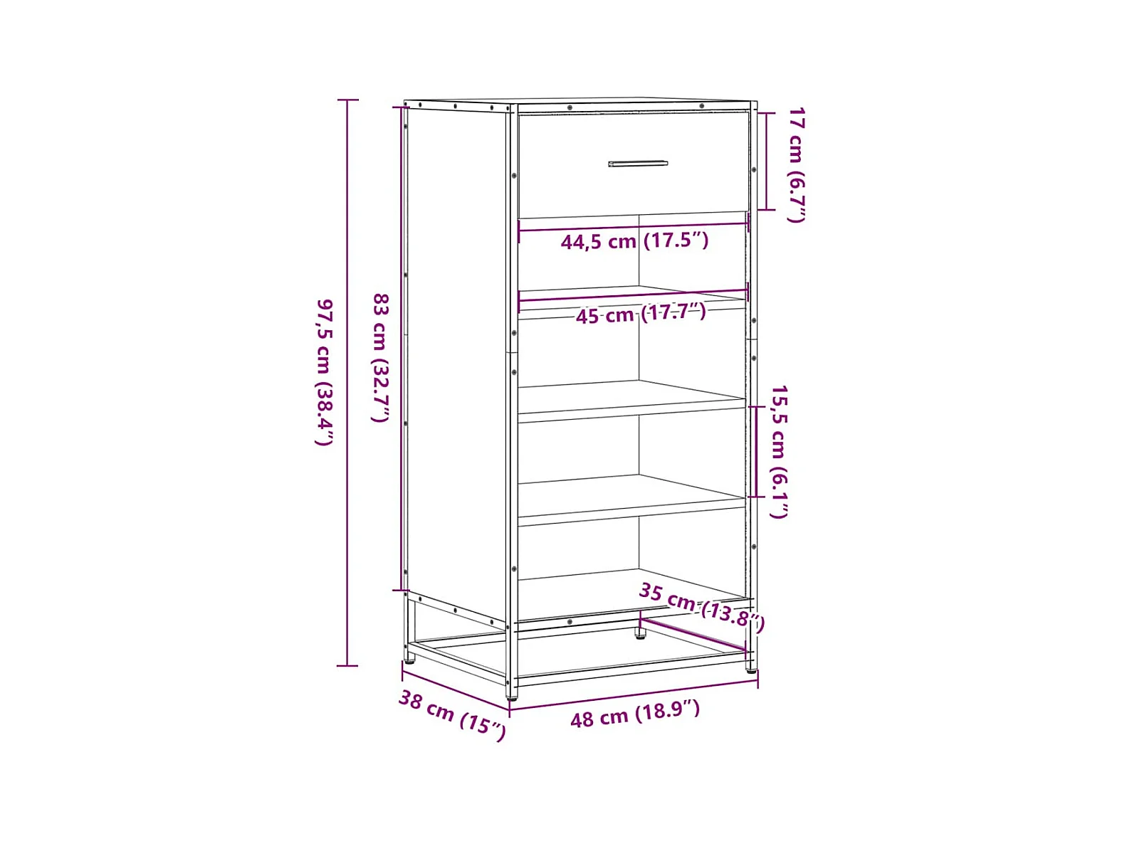 Étagère à chaussures chêne sonoma 48x38x97,5 cm bois ingénierie