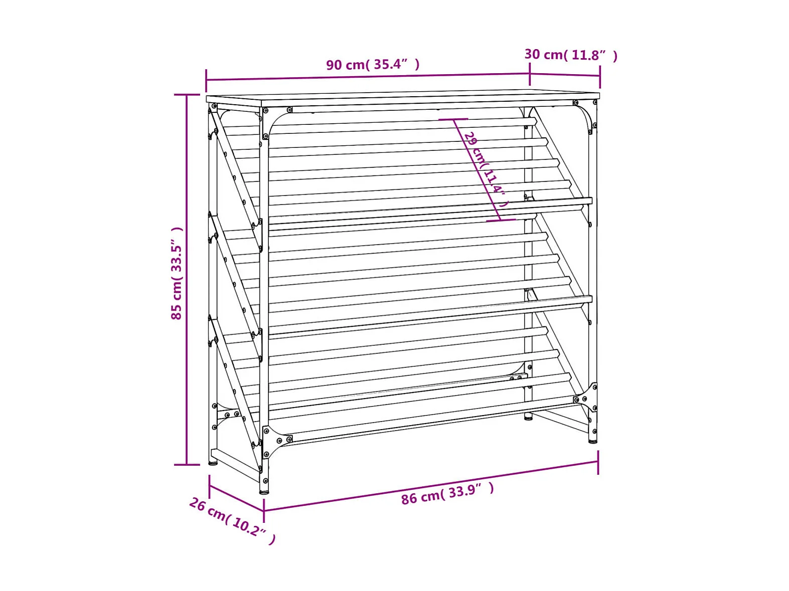 étagère à chaussures chêne fumé 90x30x45 cm bois d'ingénierie