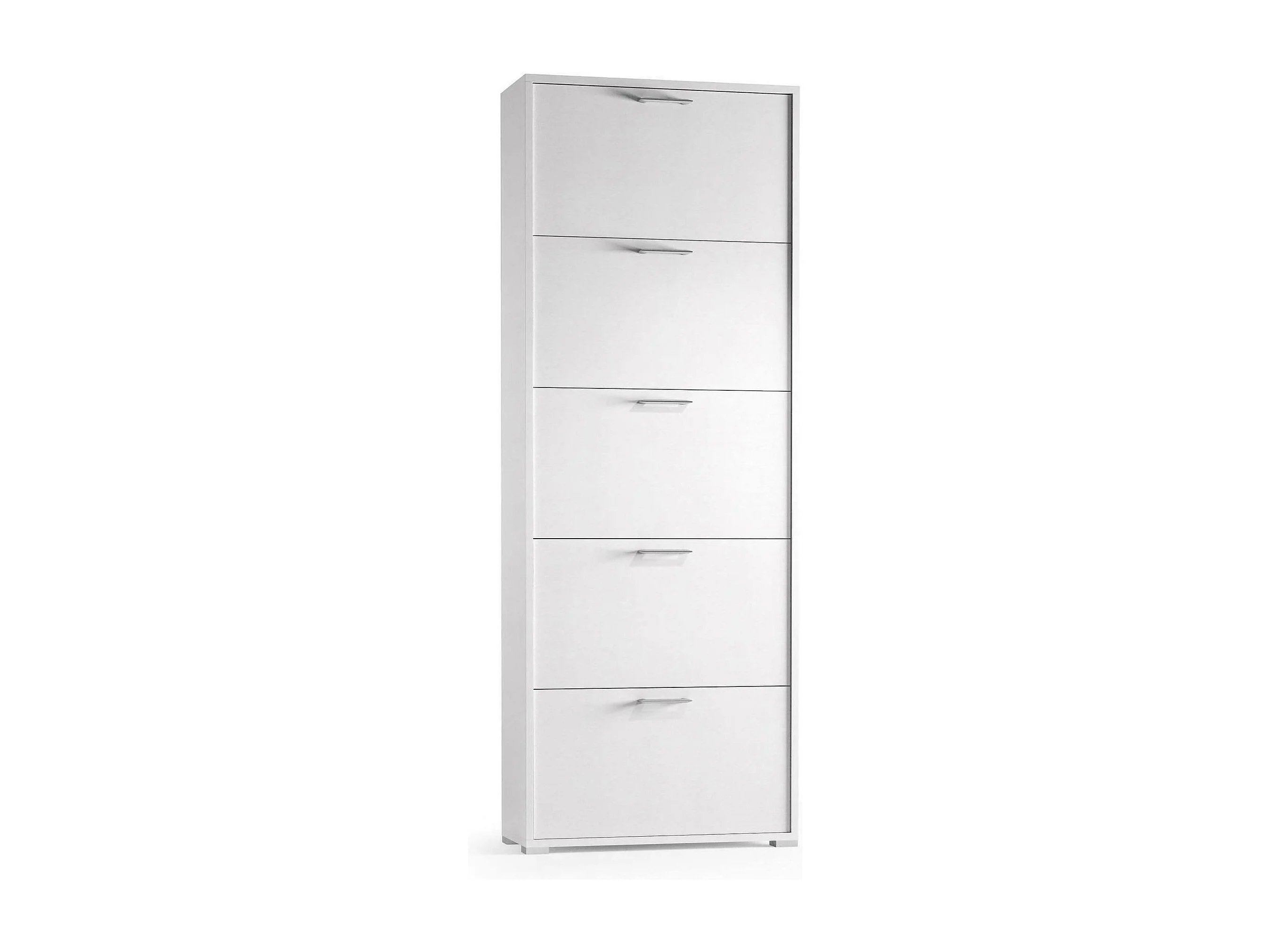 Étagère à chaussures Margherita, Meuble d'entrée polyvalent avec 5 portes pliantes, Meuble à chaussures moderne, 100% Made in Italy, 67x18h184 cm, Blanc