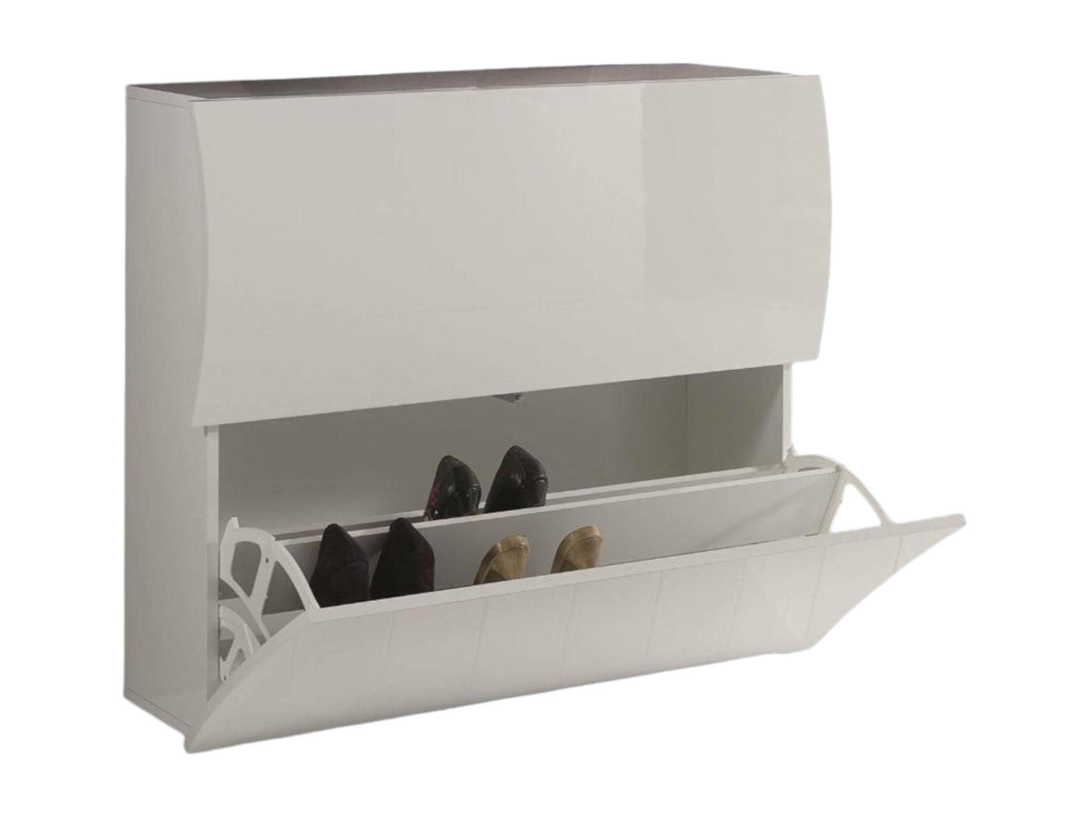 Étagère à chaussures Dfogl, Armoire polyvalente avec 2 portes, Étagère à chaussures d'entrée, 100% Made in Italy, 81x38h86 cm, Blanc brillant avec détail