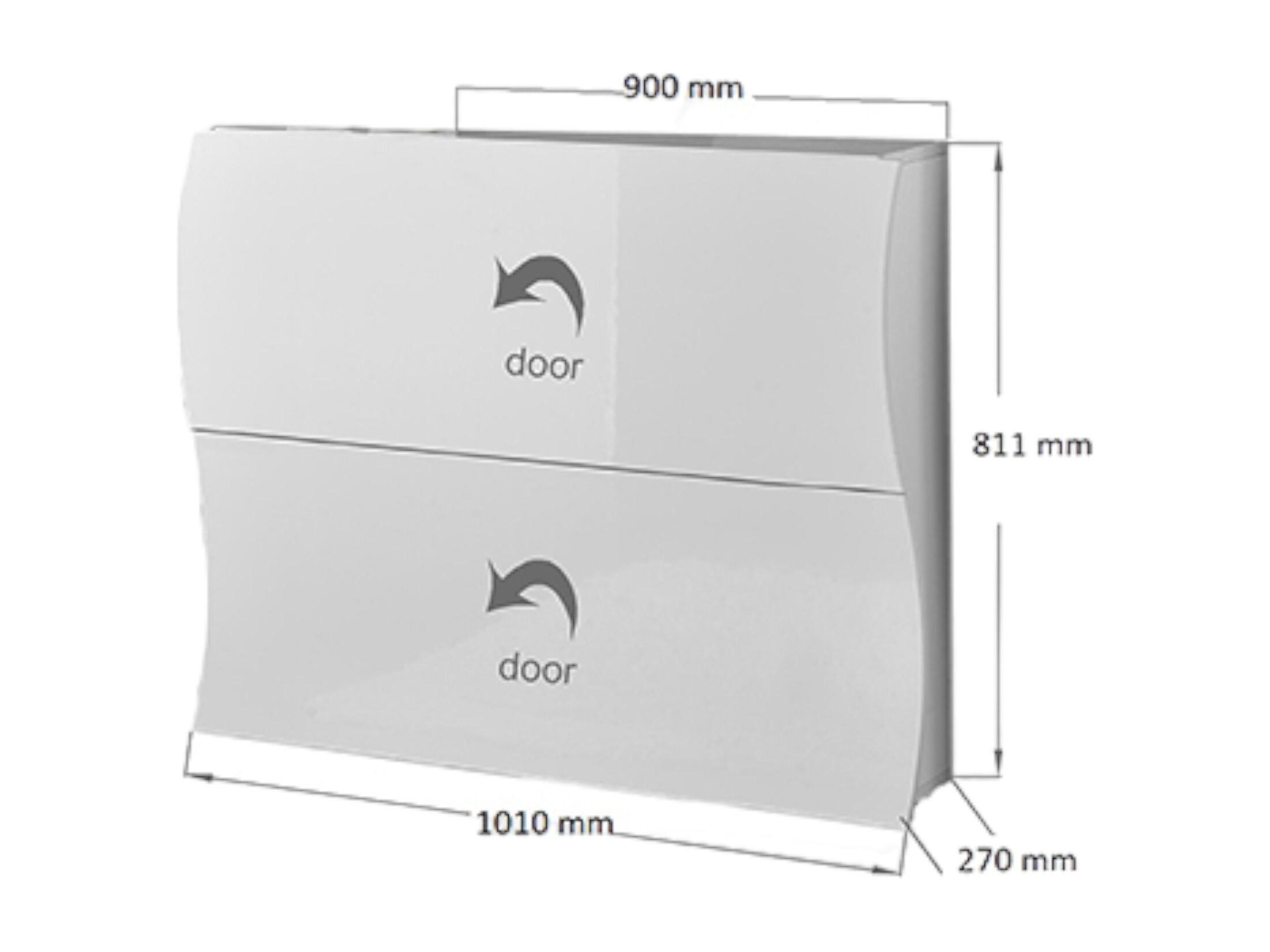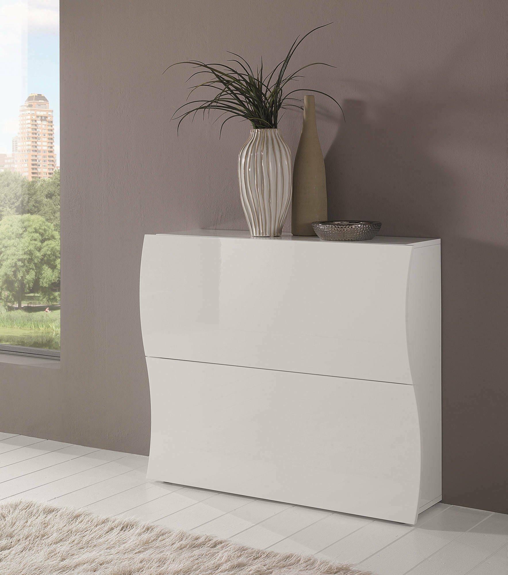 Étagère à chaussures Andrea, Armoire polyvalente avec 2 portes pliantes, Étagère à chaussures d'entrée, 100% Made in Italy, 101x27h82 cm, Blanc brillant
