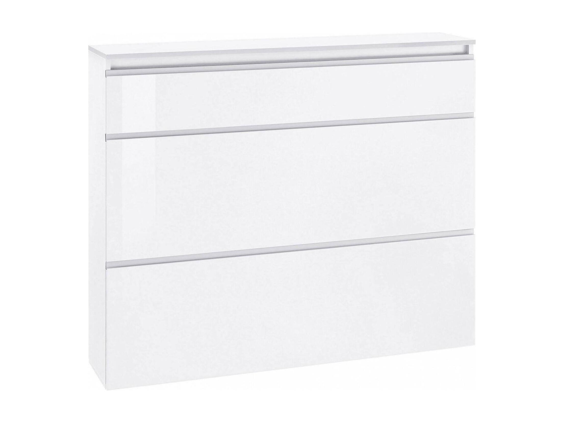 Étagère à chaussures Leonardo, Armoire polyvalente avec 3 portes, Étagère à chaussures d'entrée, 100% Made in Italy, 71x27h122 cm, Blanc brillant