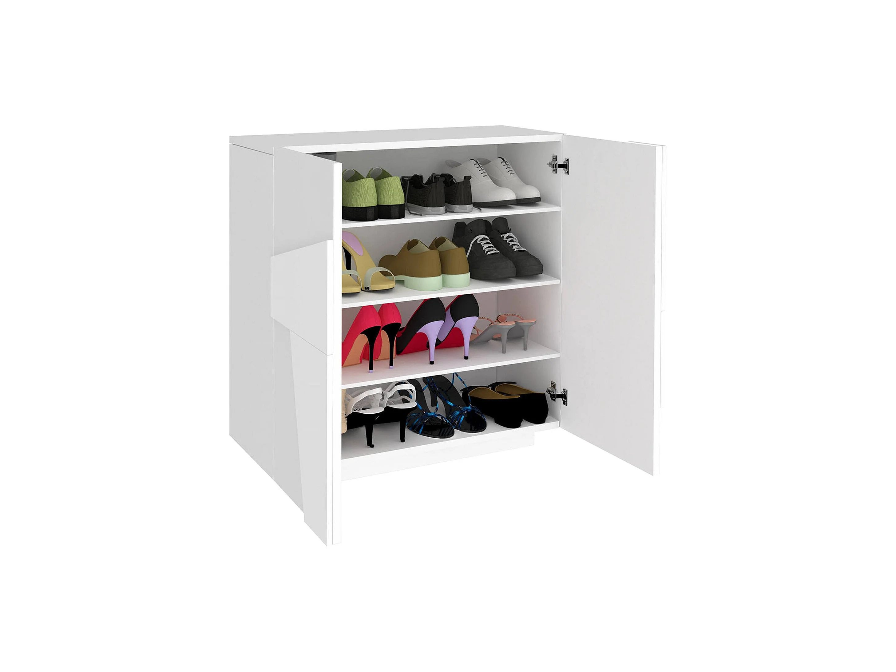 Étagère à chaussures Dfogl, Armoire polyvalente avec 2 portes, Étagère à chaussures d'entrée, 100% Made in Italy, 81x38h86 cm, Blanc brillant avec détail