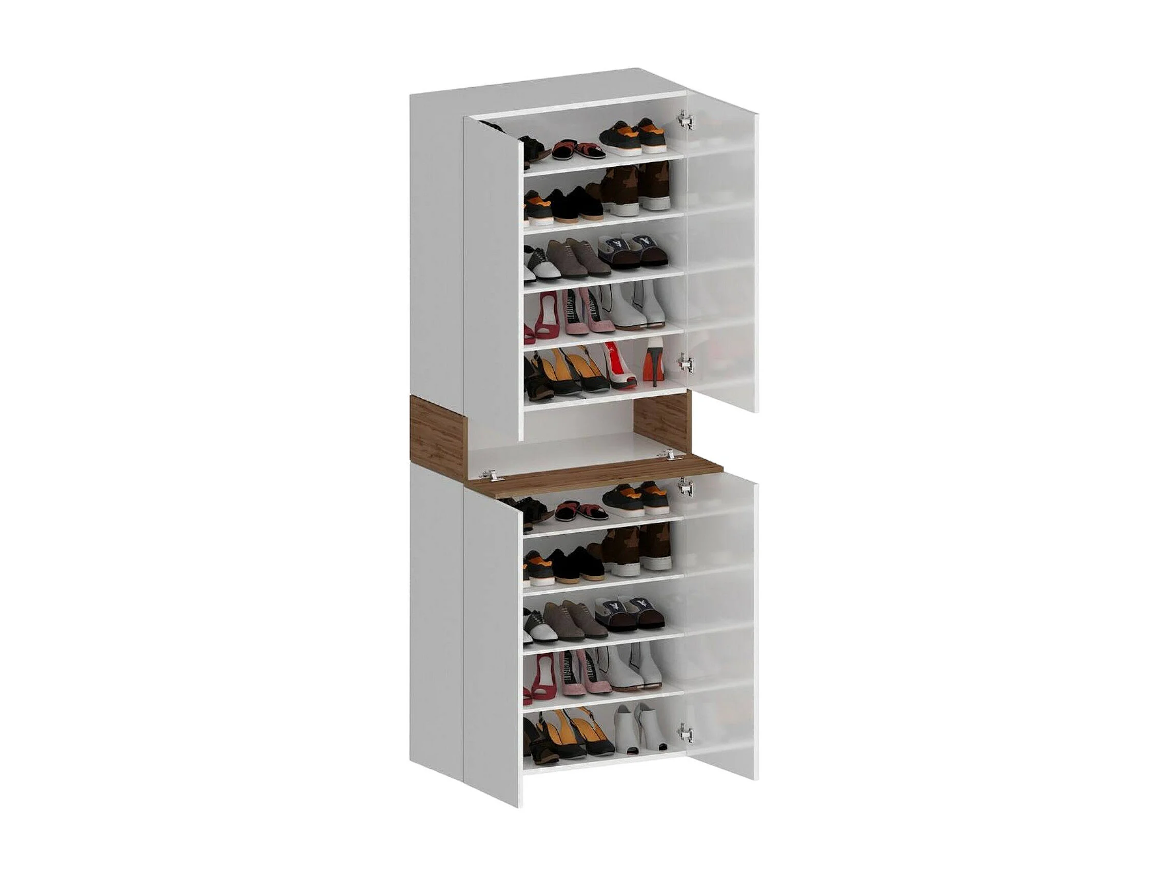 Étagère à chaussures Moris, étagère à chaussures peu encombrante à 5 portes, armoire d'entrée multifonctionnelle, 76x38h200 cm, blanc et chêne