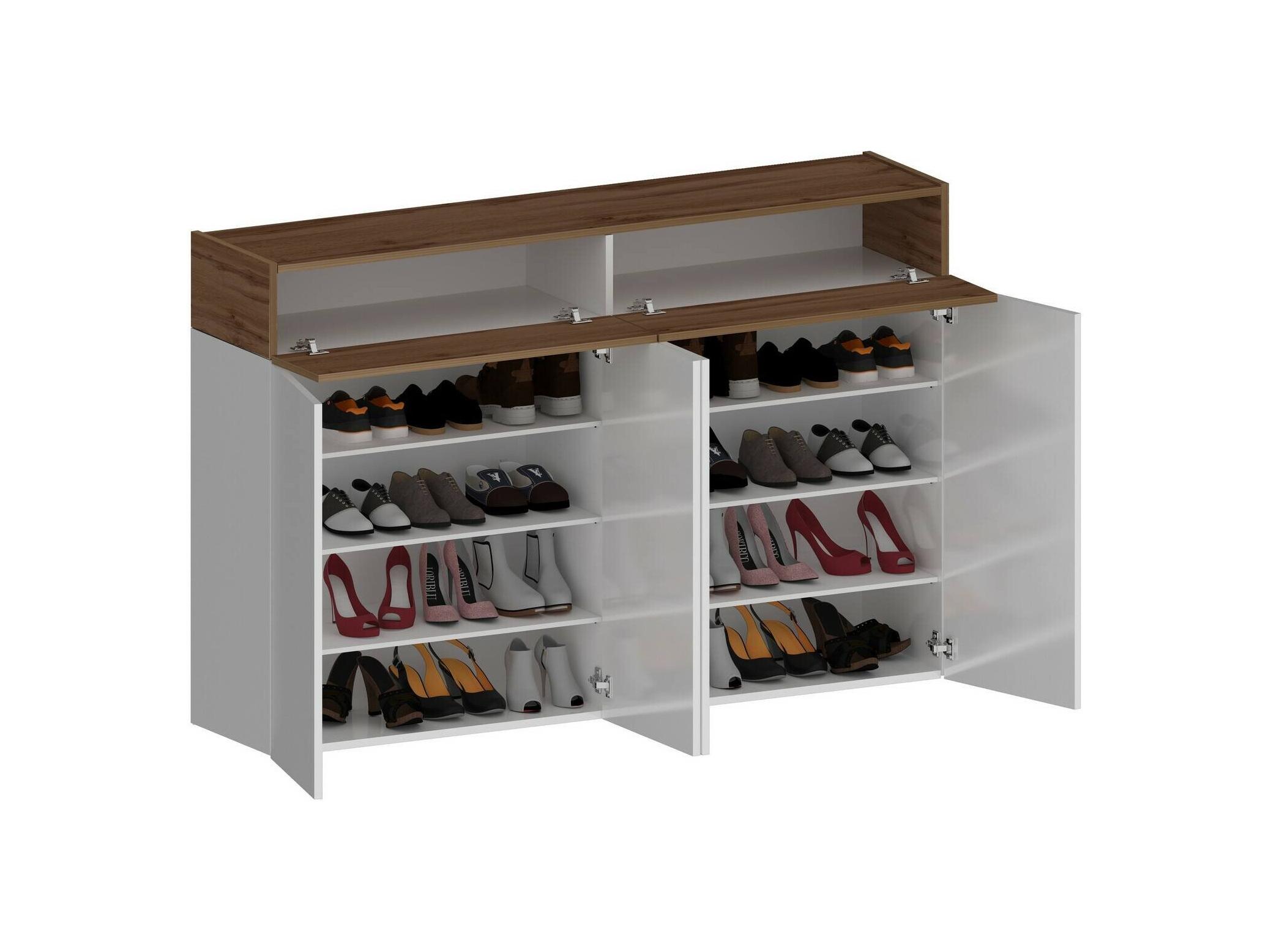 Étagère à chaussures Nadir, étagère à chaussures peu encombrante à 6 portes, armoire d'entrée multifonctionnelle, 154x38h100 cm, blanc et chêne
