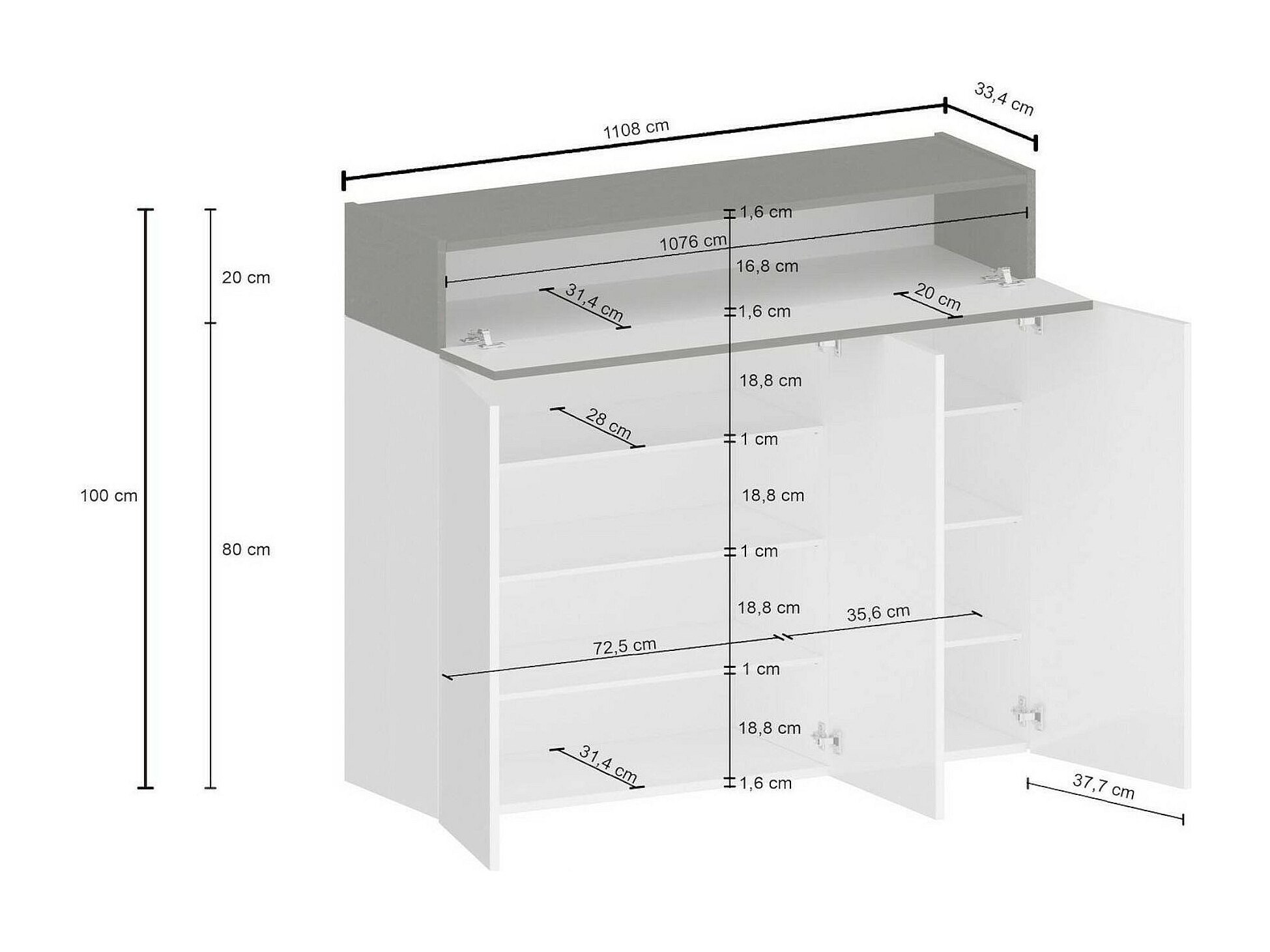 Meuble à chaussures Algedi, Meuble à chaussures, Armoire d'entrée polyvalente, Rangement pour chaussures, 110x37h43 cm, Blanc
