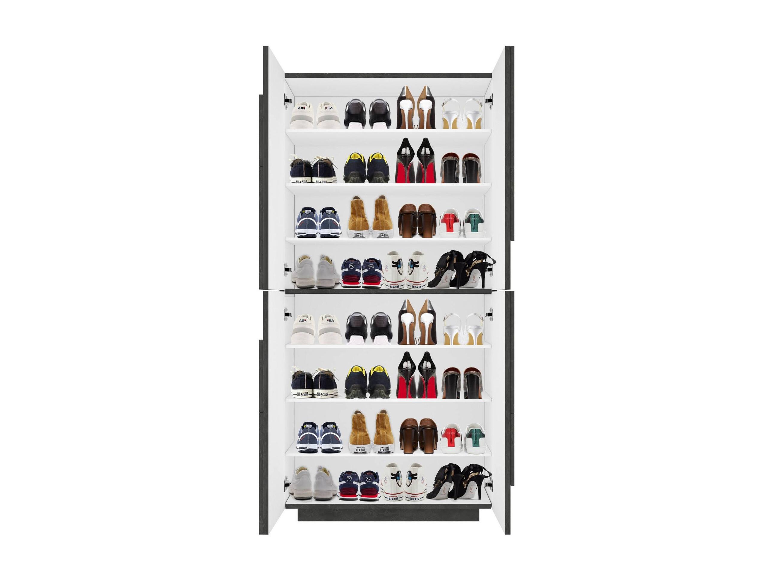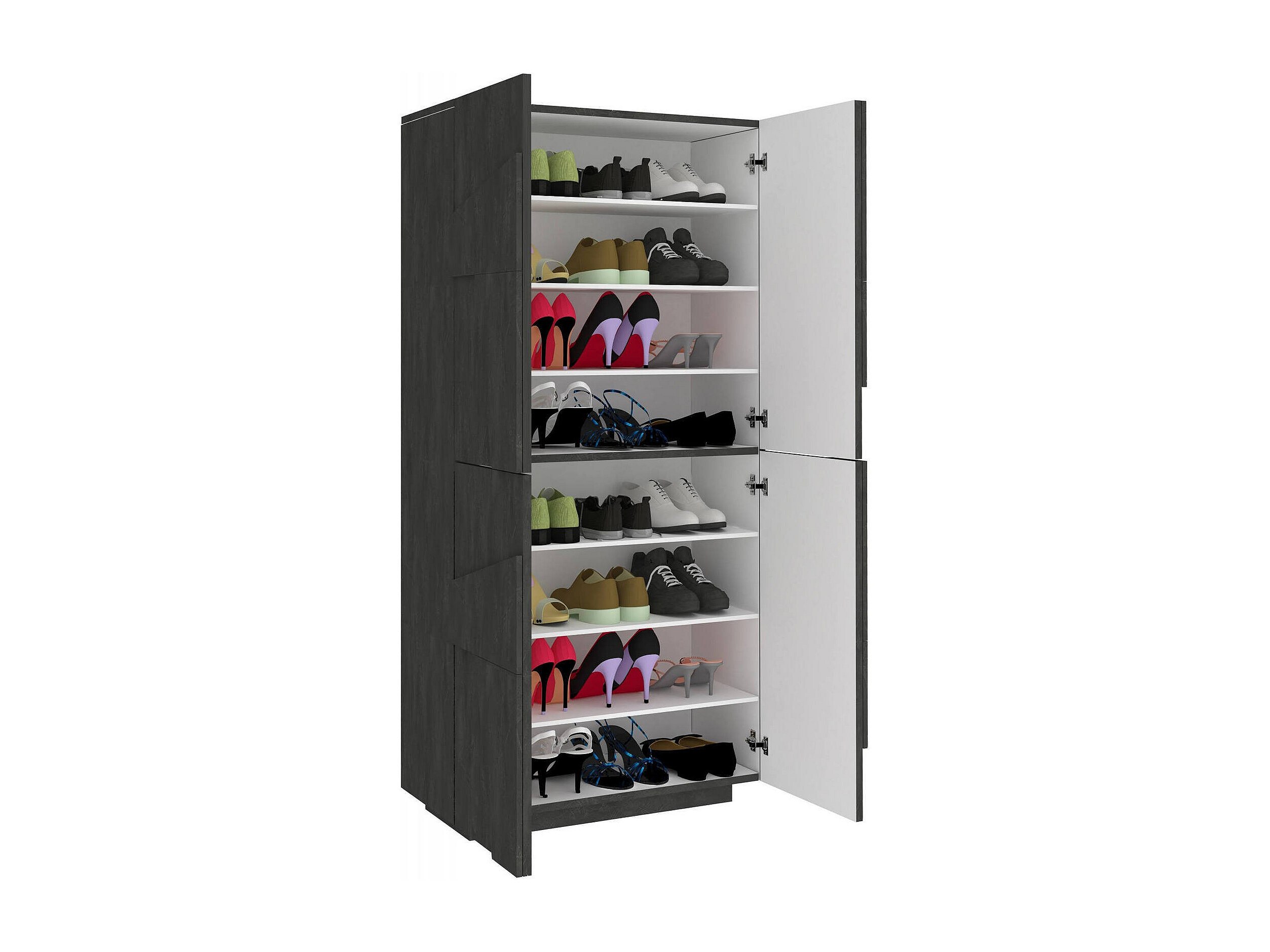 ÉTAGÉRE À CHAUSSURES - Meuble polyvalent avec 4 portes battantes, Meuble à chaussures d'entrée, 100% Made in Italy, 81x38h167 cm, Ardoise.