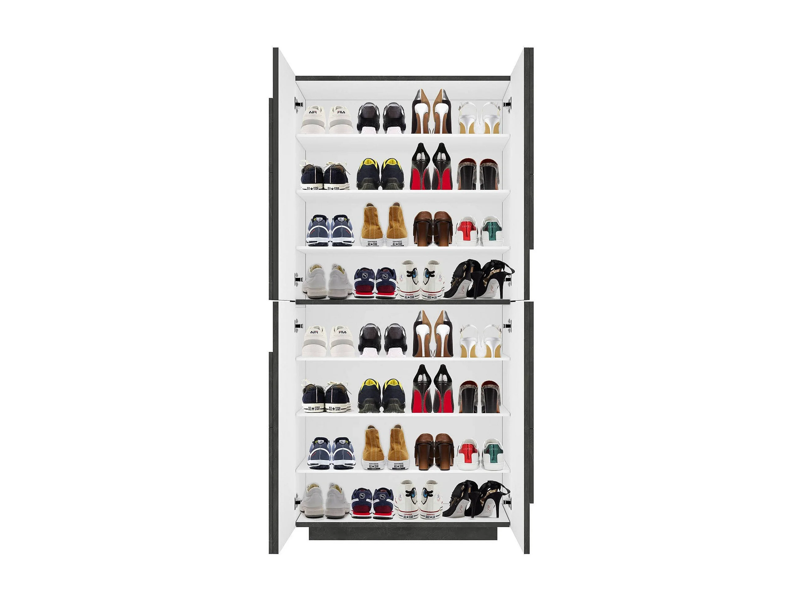 Étagère à chaussures Orfeo, Armoire polyvalente avec 4 portes battantes, Étagère à chaussures d'entrée, 100% Made in Italy, 81x38h167 cm, Ardoise