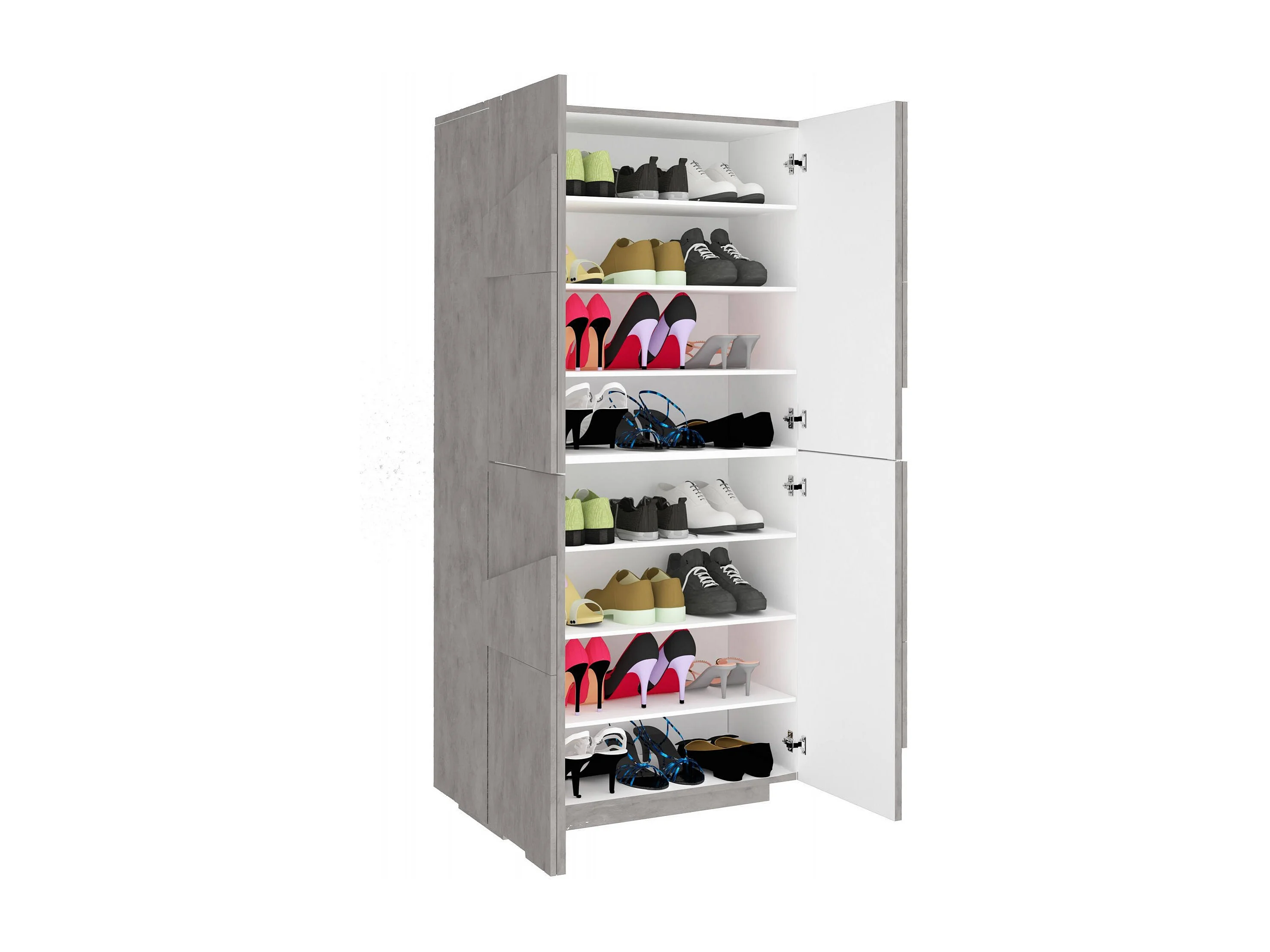 Étagère à chaussures Orfeo, Armoire polyvalente avec 4 portes battantes, Étagère à chaussures d'entrée, 100% Made in Italy, 81x38h167 cm, Ciment