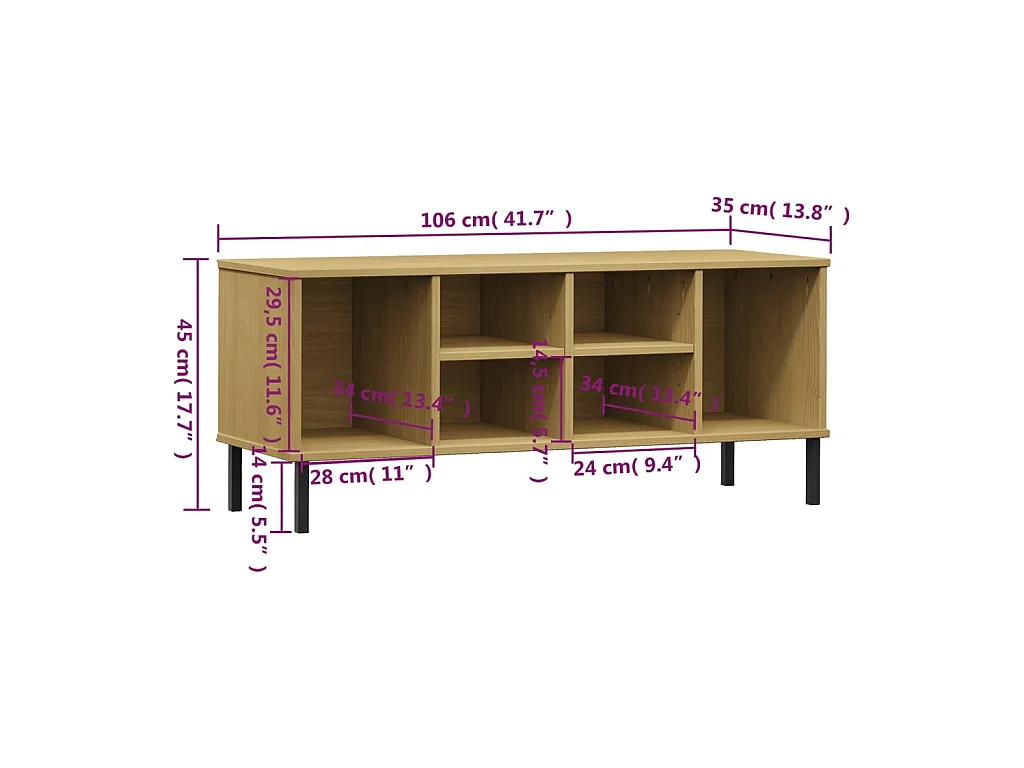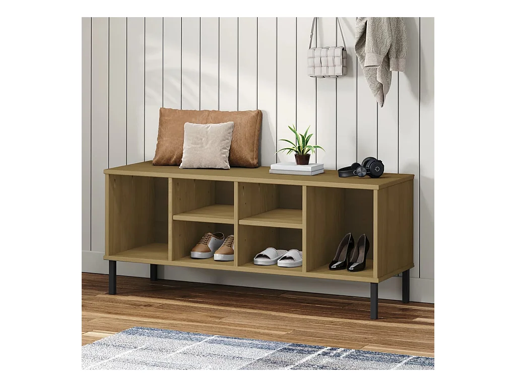 étagère à chaussures pieds en métal marron 106x35x45 cm Bois OSLO