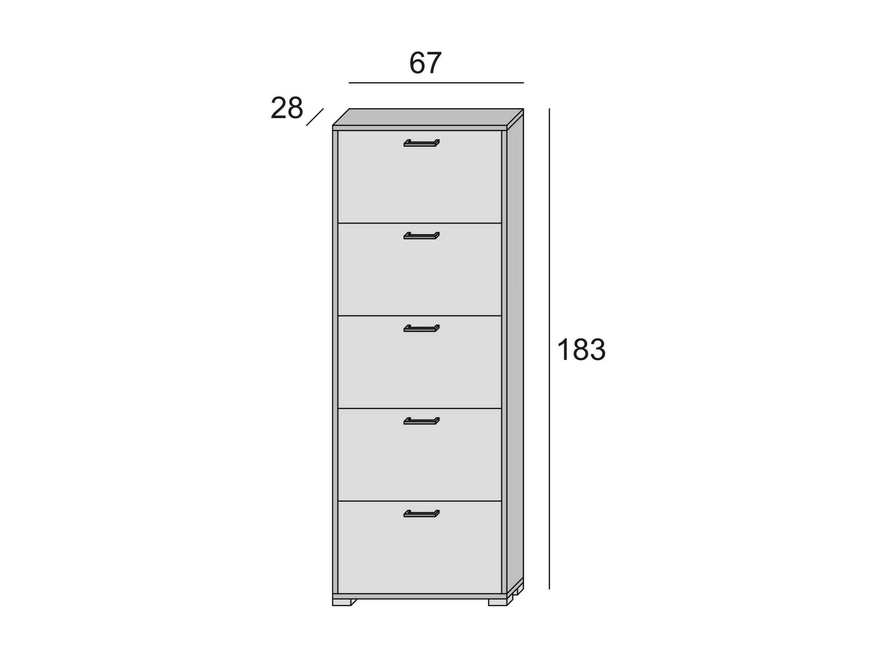 CARACTÉRISTIQUES TECHNIQUES - Construit entièrement en panneau de mélamine thermostructuré E1, plateaux en matière plastique, il résiste aux chocs et aux rayures et est durable dans le temps - Nettoyage rapide et facile grâce au matériau dont il est constitué - Livré démonté avec kit et livret d'instructions au montage - Soin et attention particuliers à l'emballage, résistant et adapté au transport - Bois certifié FSC, l'épaisseur de 18 mm garantit une haute résistance des matériaux, résultat esthétique élevé grâce à la finition très haute définition - Dimensions en cm - 67x28x183.