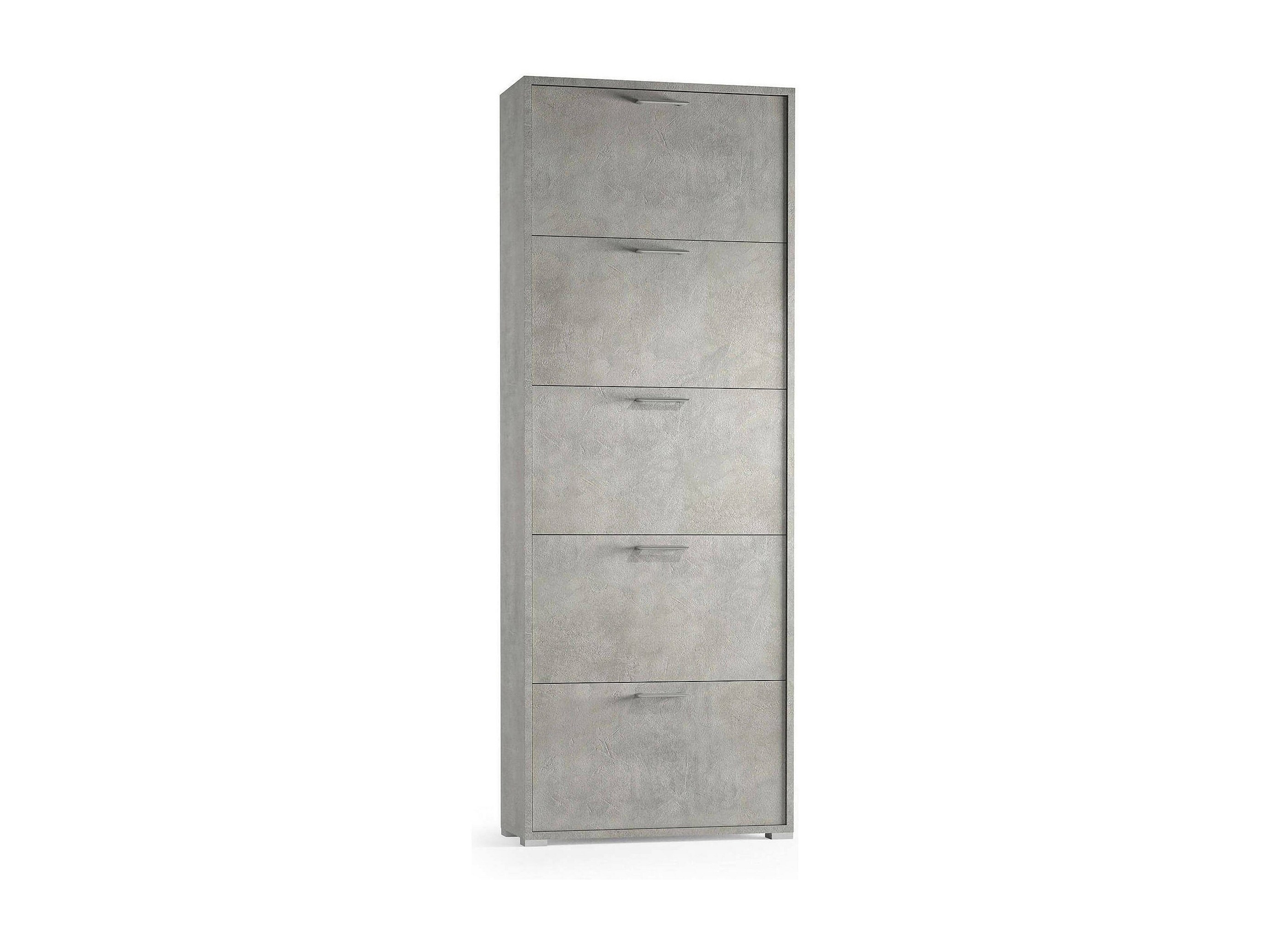 Étagère à chaussures Surfinia, Meuble d'entrée polyvalent avec 5 portes pliantes, Meuble à chaussures double profondeur, 100% Made in Italy, 67x28h183 cm, Ciment