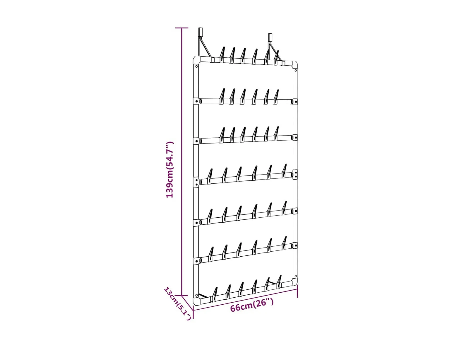 Étagère à chaussures suspendue Argenté 66x13x139 cm