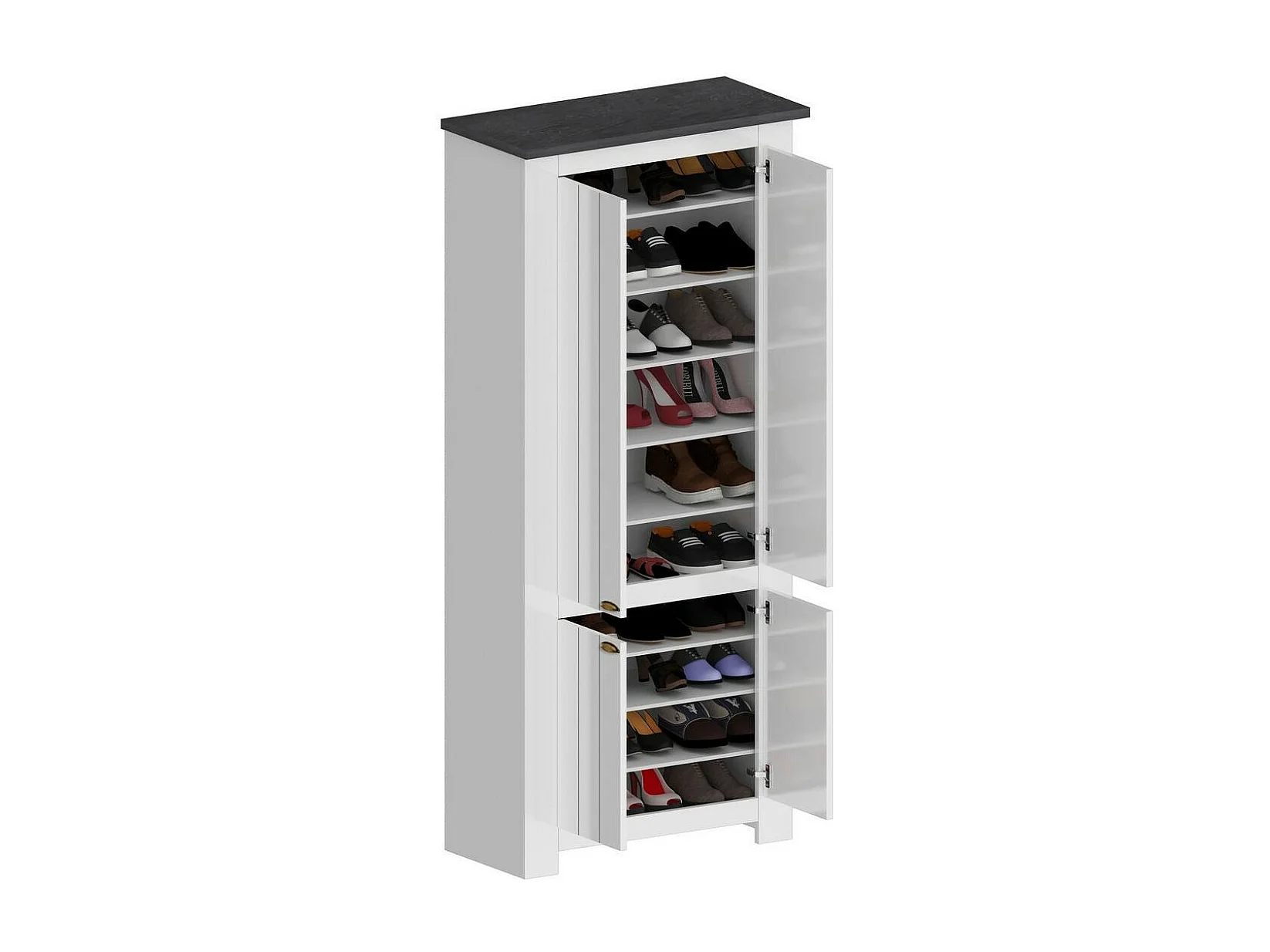 Étagère à chaussures Teodoro, étagère à chaussures peu encombrante avec 4 portes, armoire d'entrée multifonctionnelle, 84x42h200 cm, Blanc et Ardoise