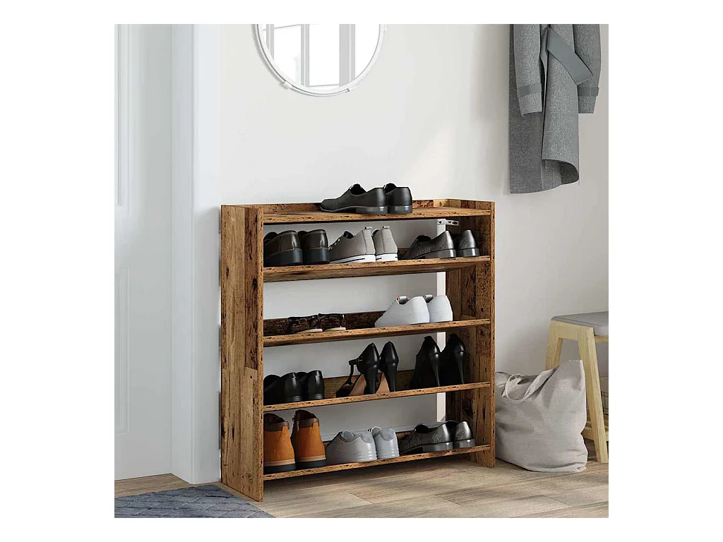 Étagère à chaussures vieux bois 80x25x81 cm bois d'ingénierie