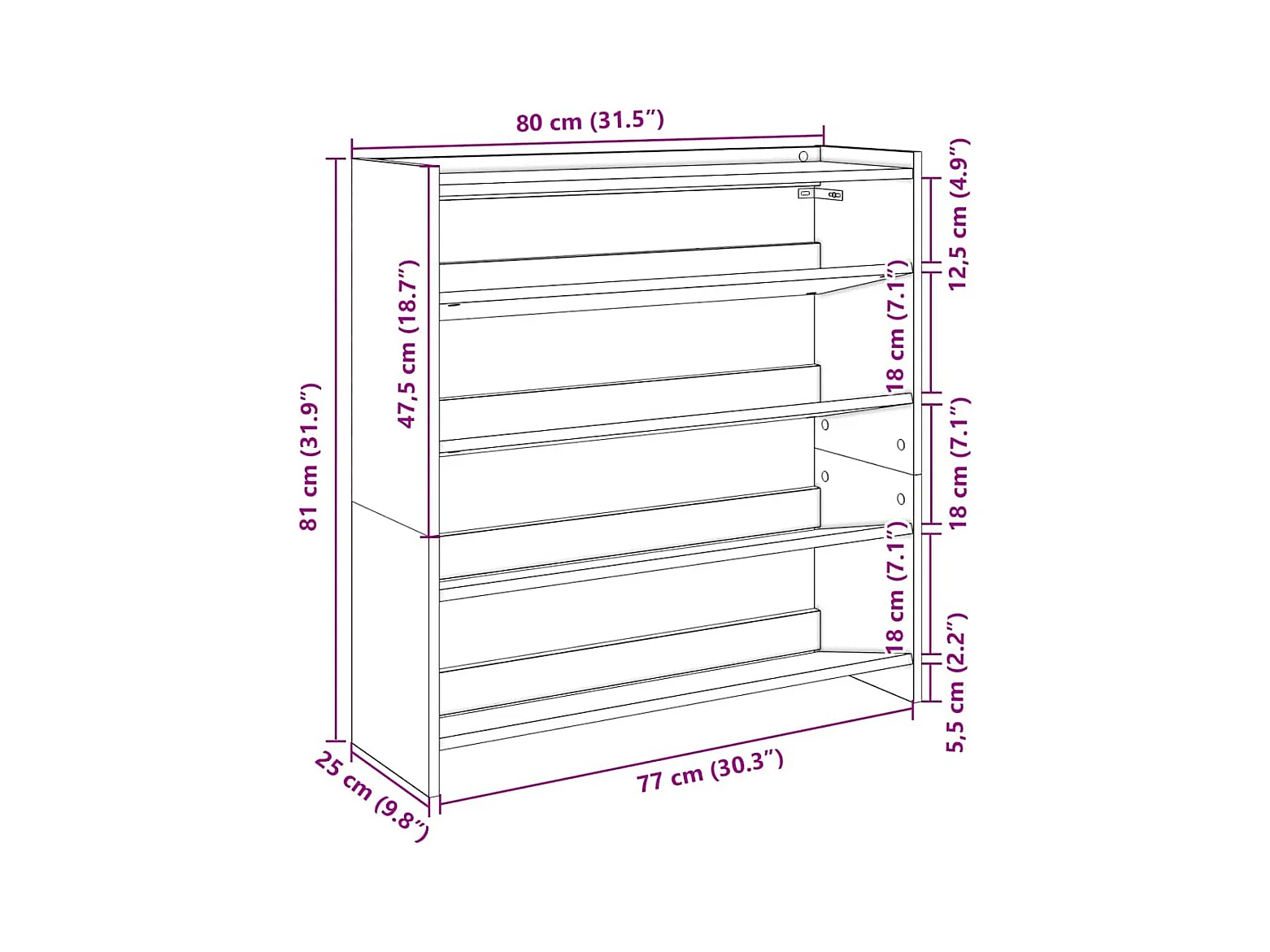 Étagère à chaussures chêne sonoma 80x25x81 cm bois ingénierie