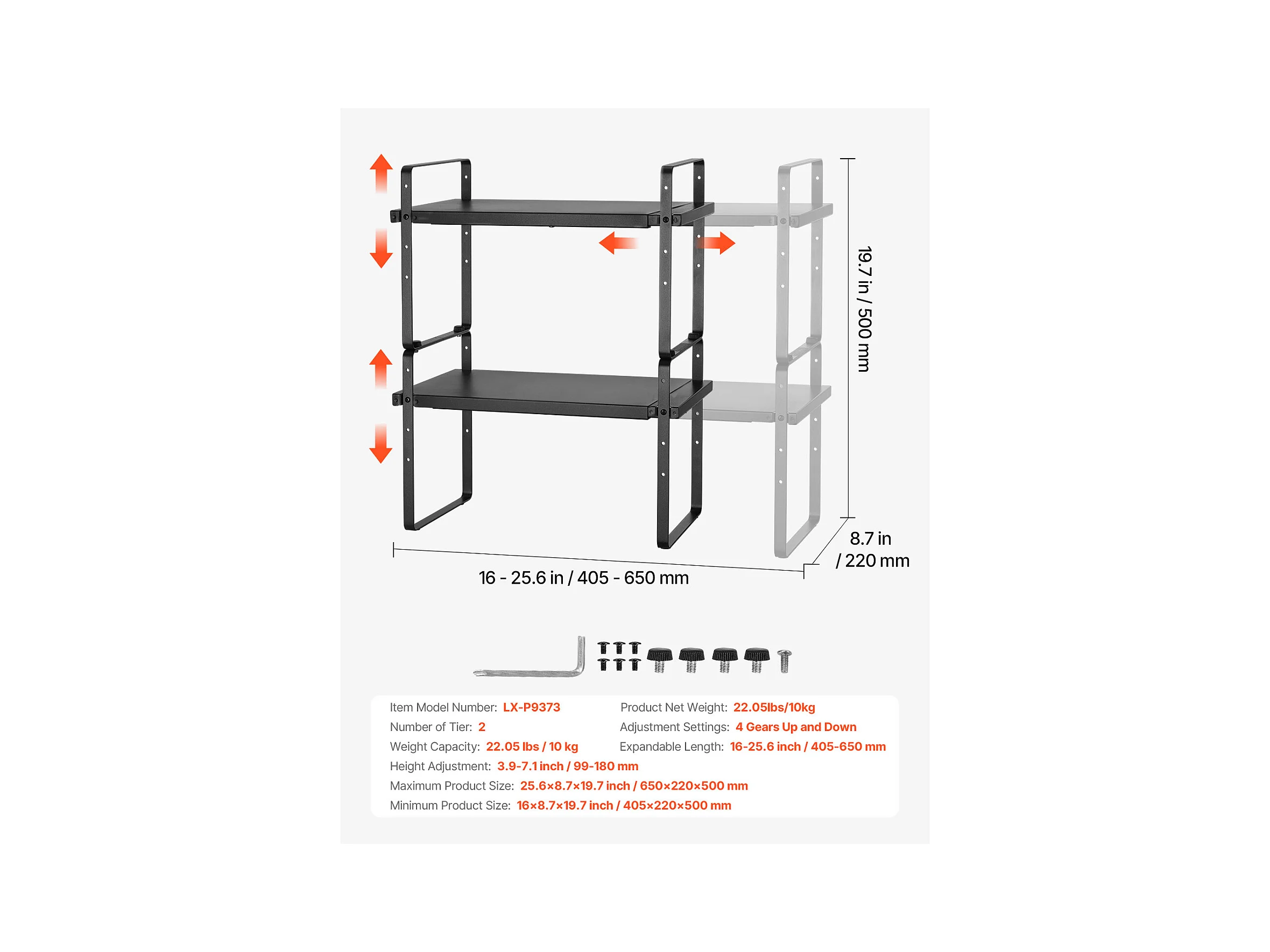 Étagère à Épices SucceBuy Étagère à Épices à 2 Niveaux Ajustable de 99 à 180 mm, Couleur Blanche
