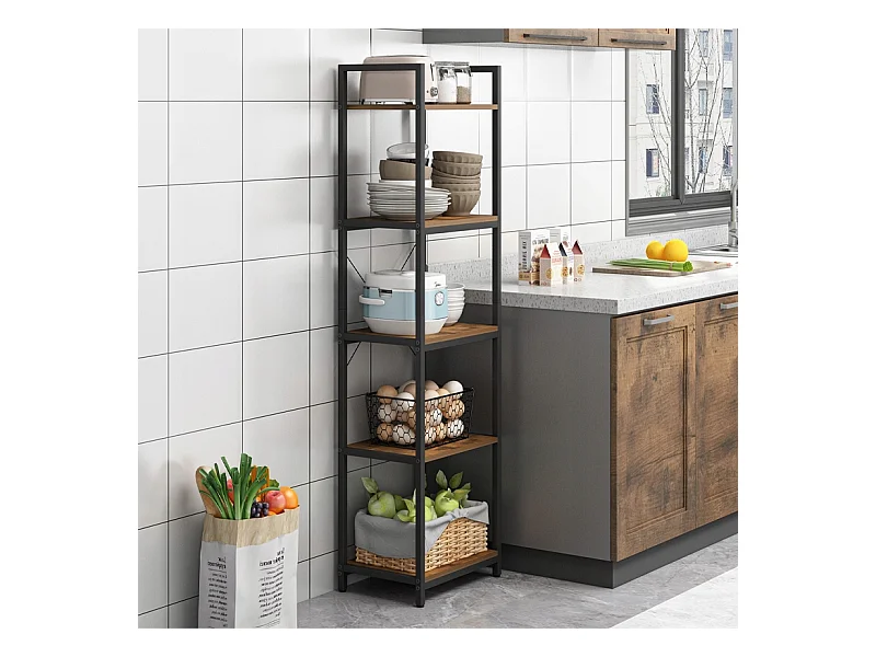 Bibliothèque SucceBuy Ouverte Étroite en Bois à 5 Niveaux de 135CM avec Étagère Réglable en Brun