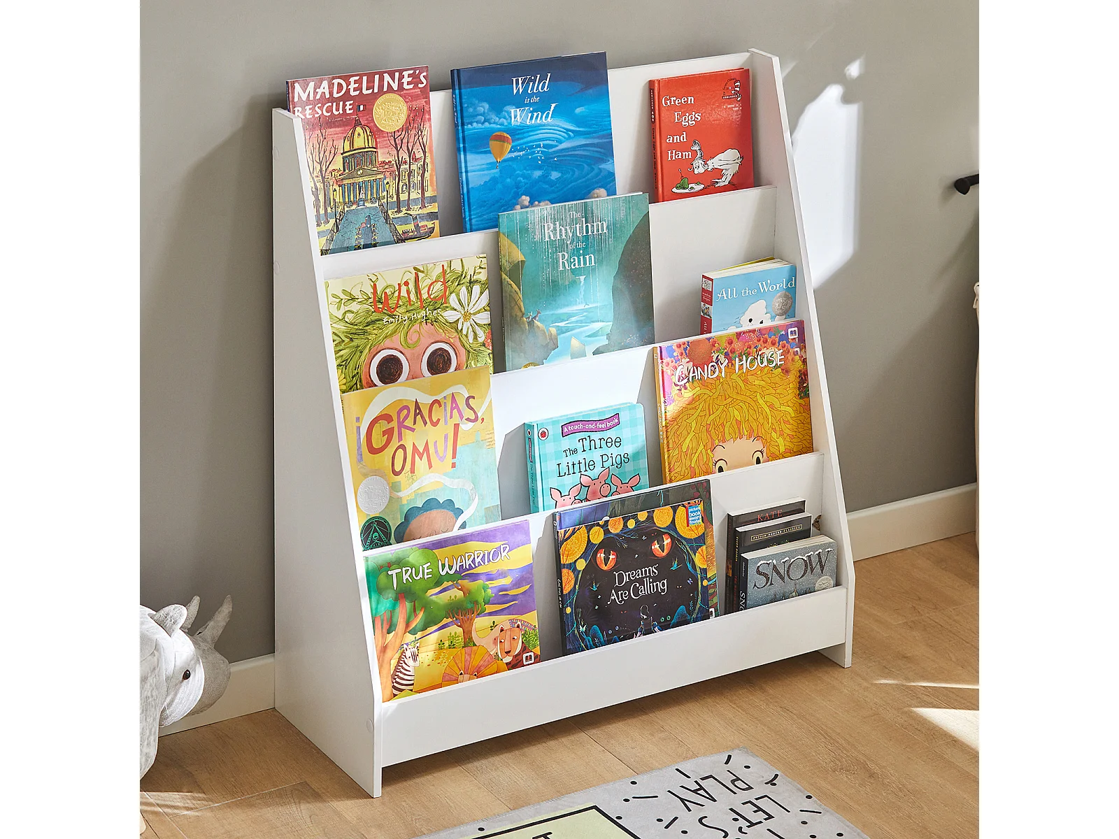Étagère À Livres Pour Enfants Avec 4 Compartiments De Rangement Blanc, Kmb32-w