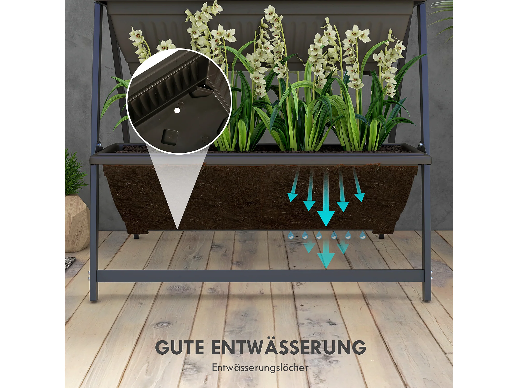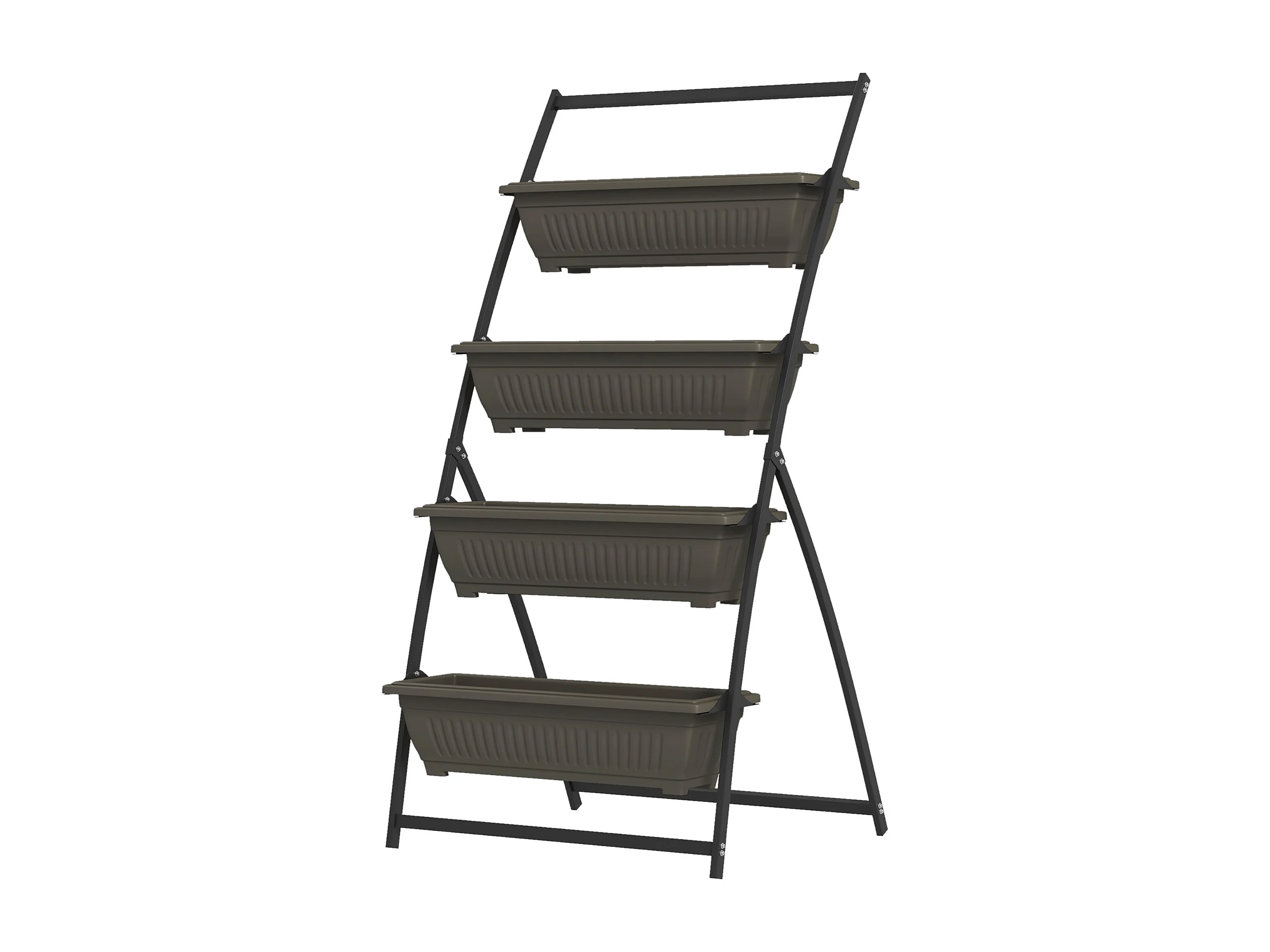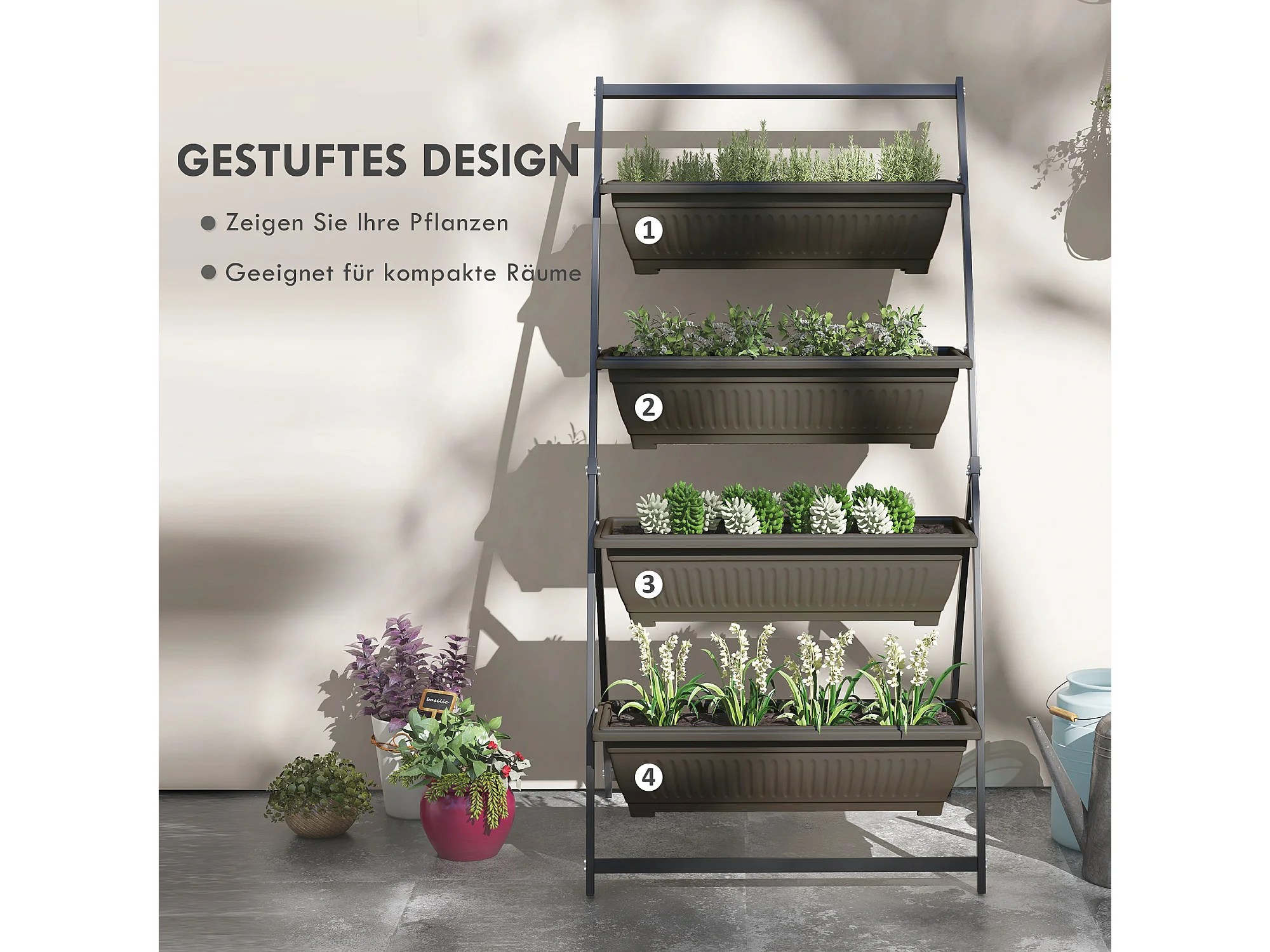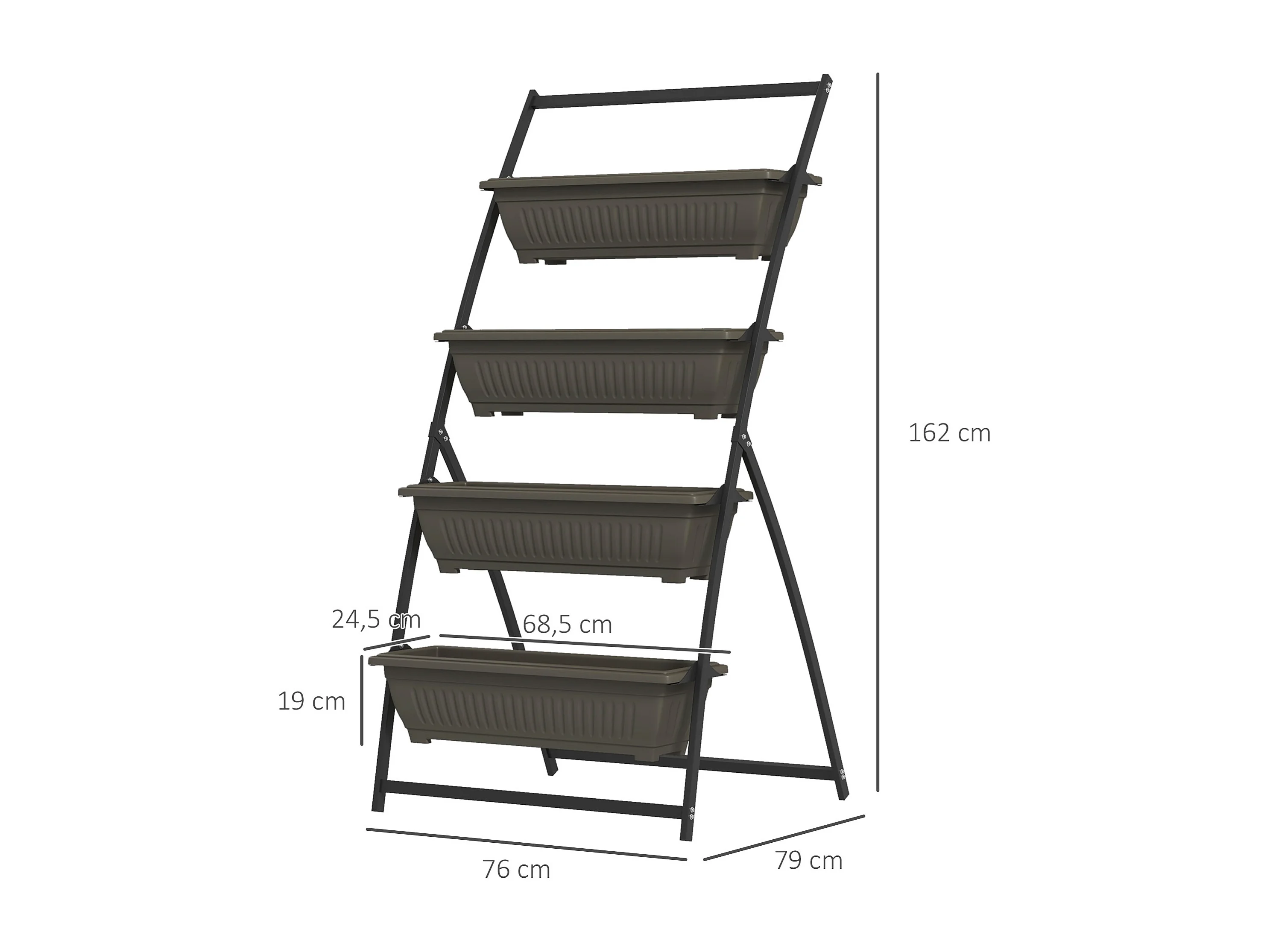 Étagère à plantes 4 niveaux, en acier, avec trous de drainage, bois, brun (76x79x162 cm)