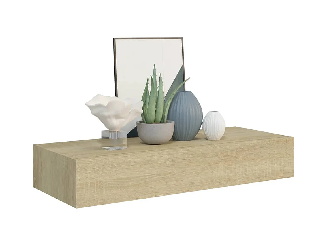 Étagère à tiroir murale chêne 60x23,5x10 cm MDF OFR93826 BonneVie Meuble