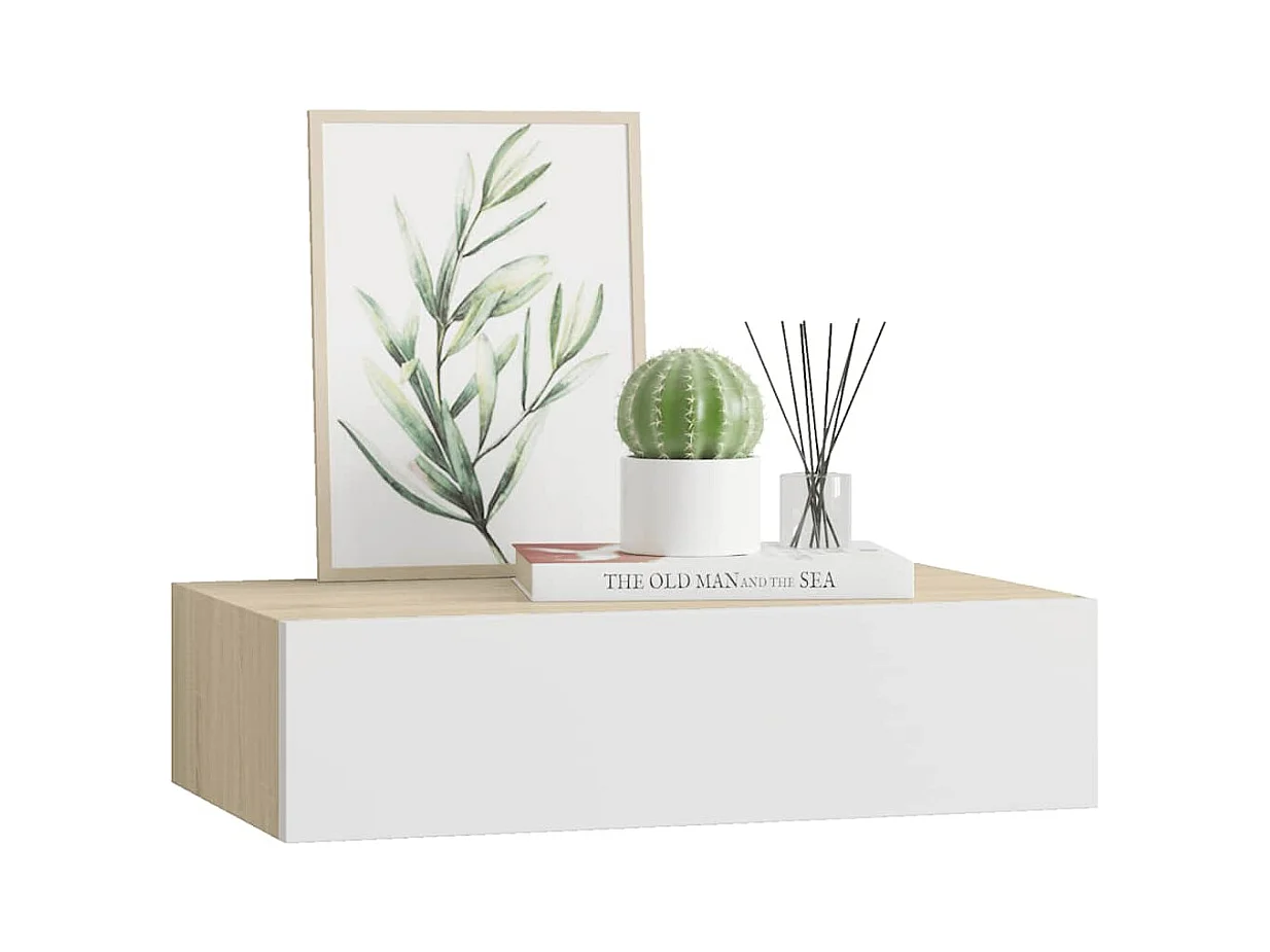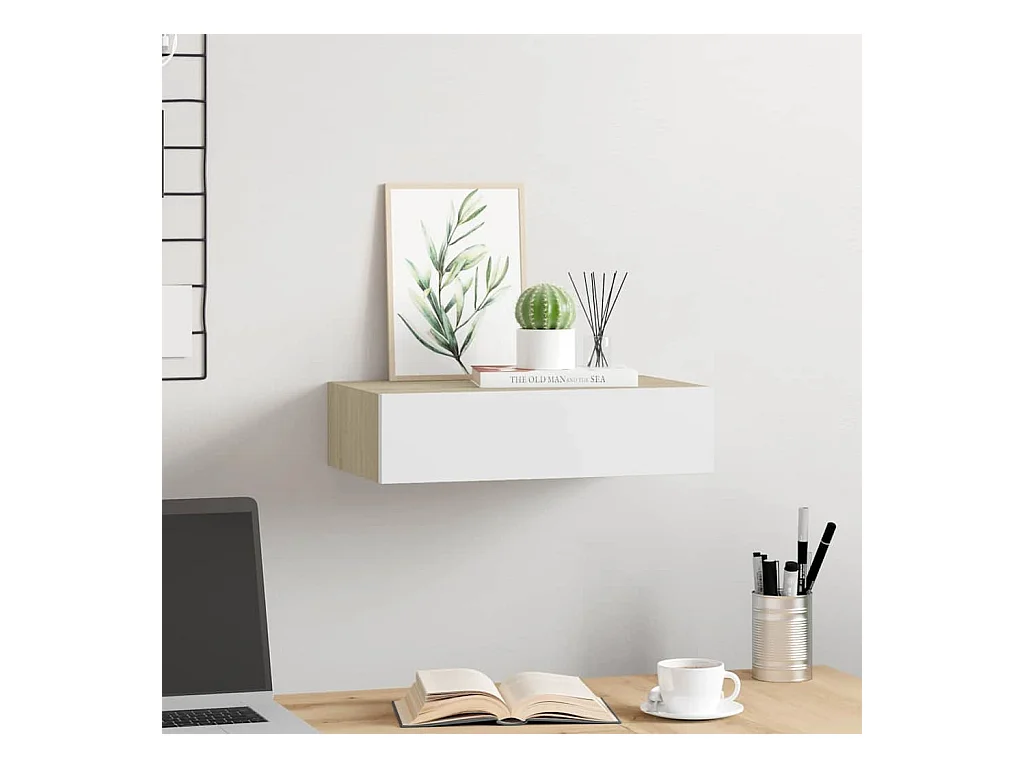 Étagère à tiroir murale chêne et blanc 60x23,5x10 cm MDF
