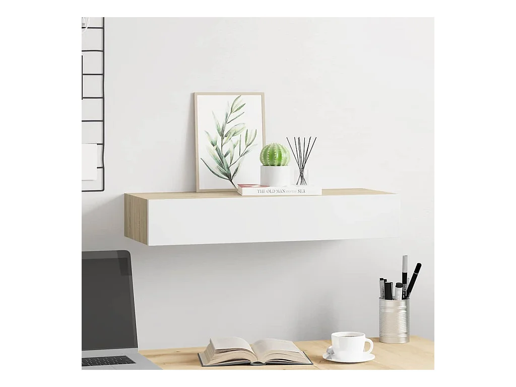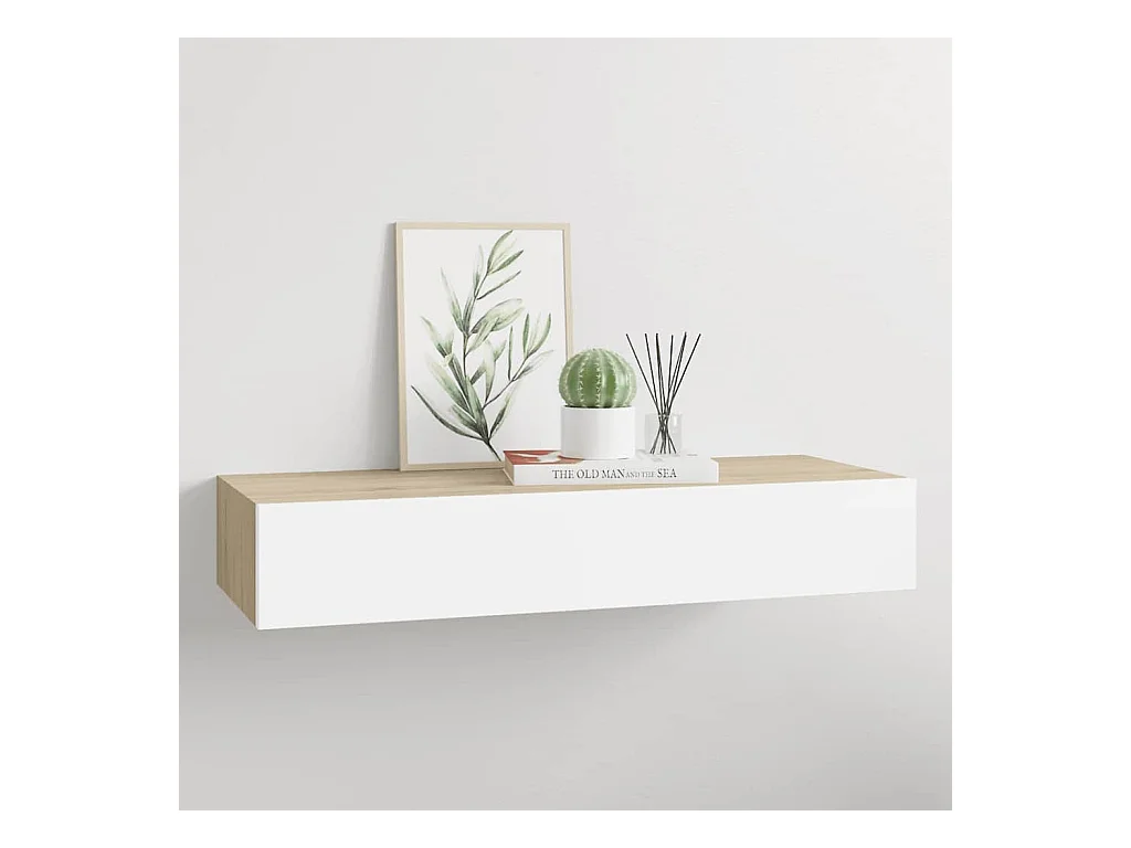 Étagère à tiroir murale chêne et blanc 60x23,5x10 cm MDF