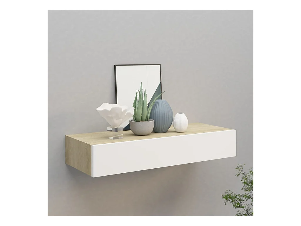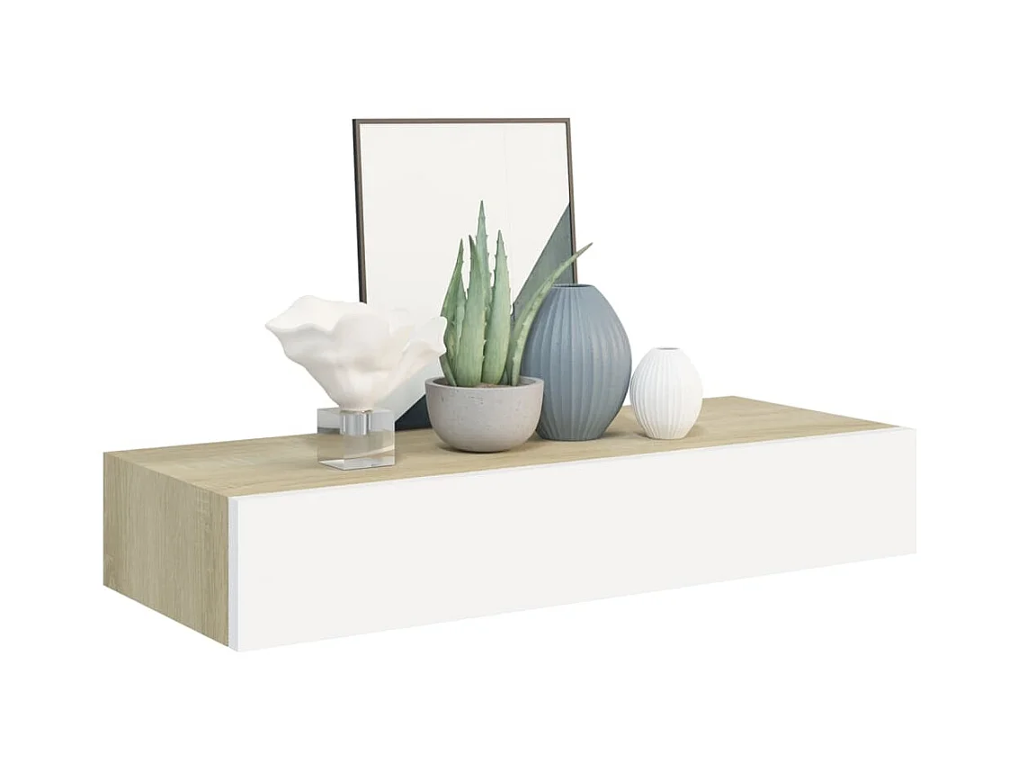Étagère à tiroir murale chêne et blanc 60x23,5x10 cm MDF OFR11095 BonneVie Meuble