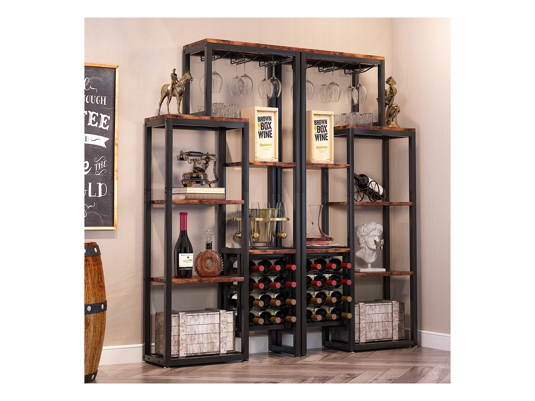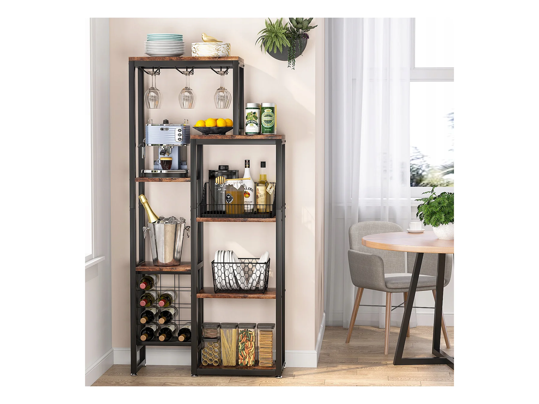 Étagère à vin Autonome à 5 étages avec Support en Verre et Rangement de vin, étagère Industrielle pour Bar, Cuisine, Salle à Manger (Marron)
