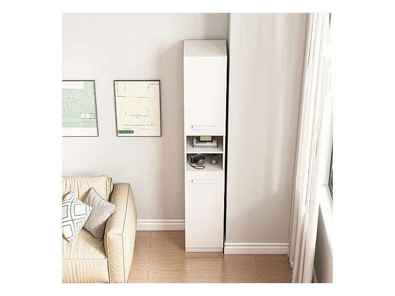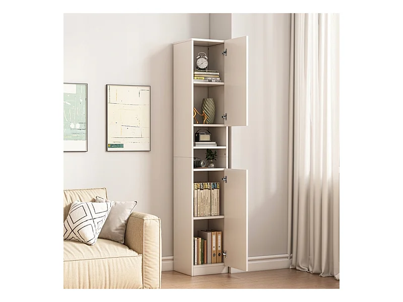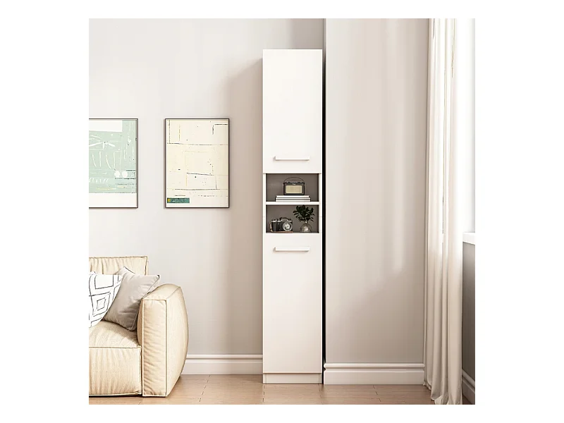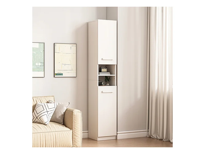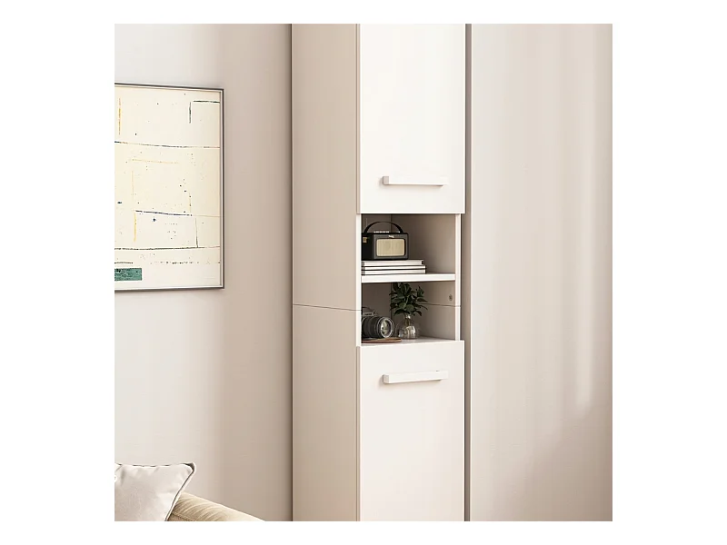 ÉTAGÈRE ARMOIRE BLANCHE MODERNE SUR PIED COLONNE HAUTE LOFT 2 PORTES 180 CM