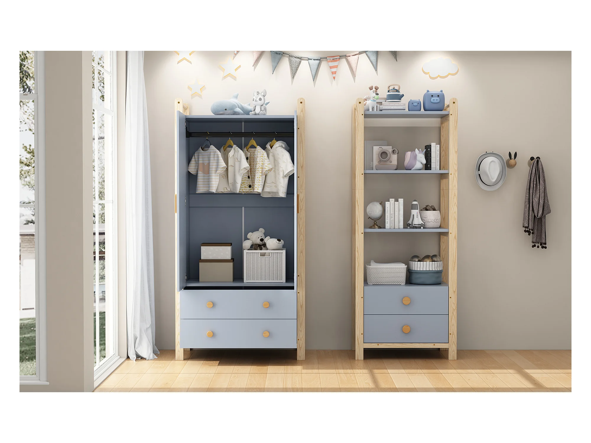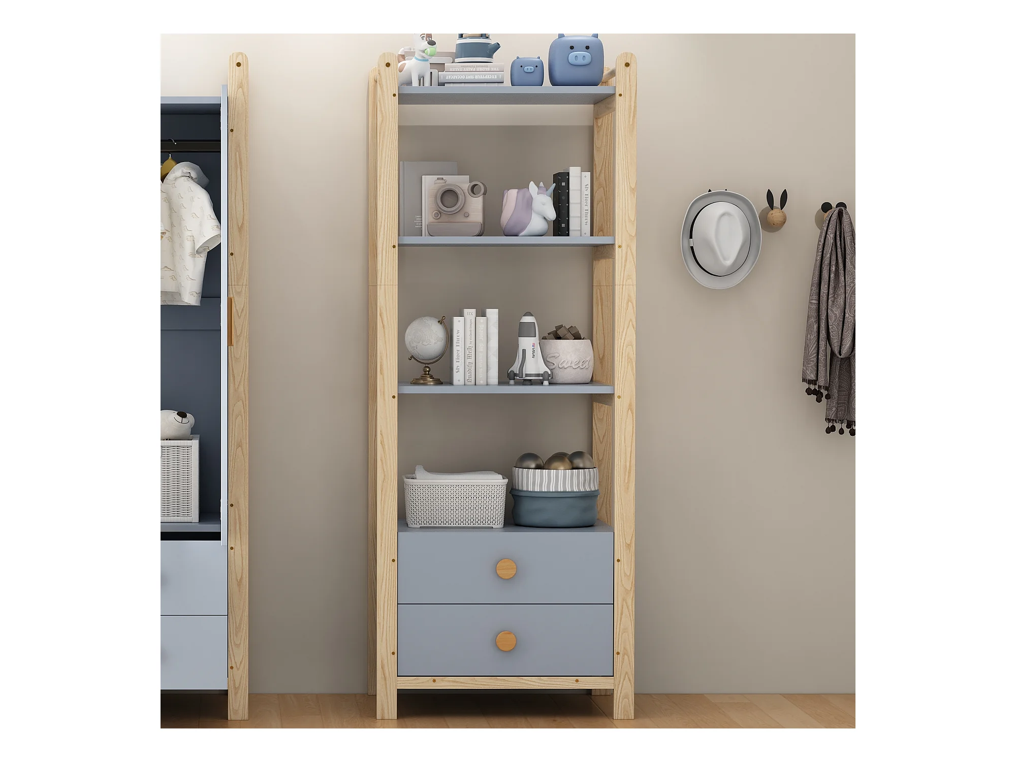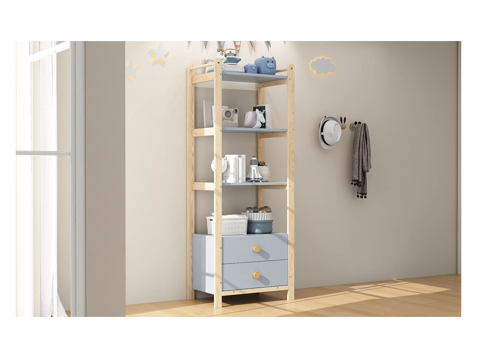 Étagère autoportante - 70 x 44 x 180 cm - avec 2 tiroirs - bibliothèque à 4 niveaux - bois - naturel + bleu