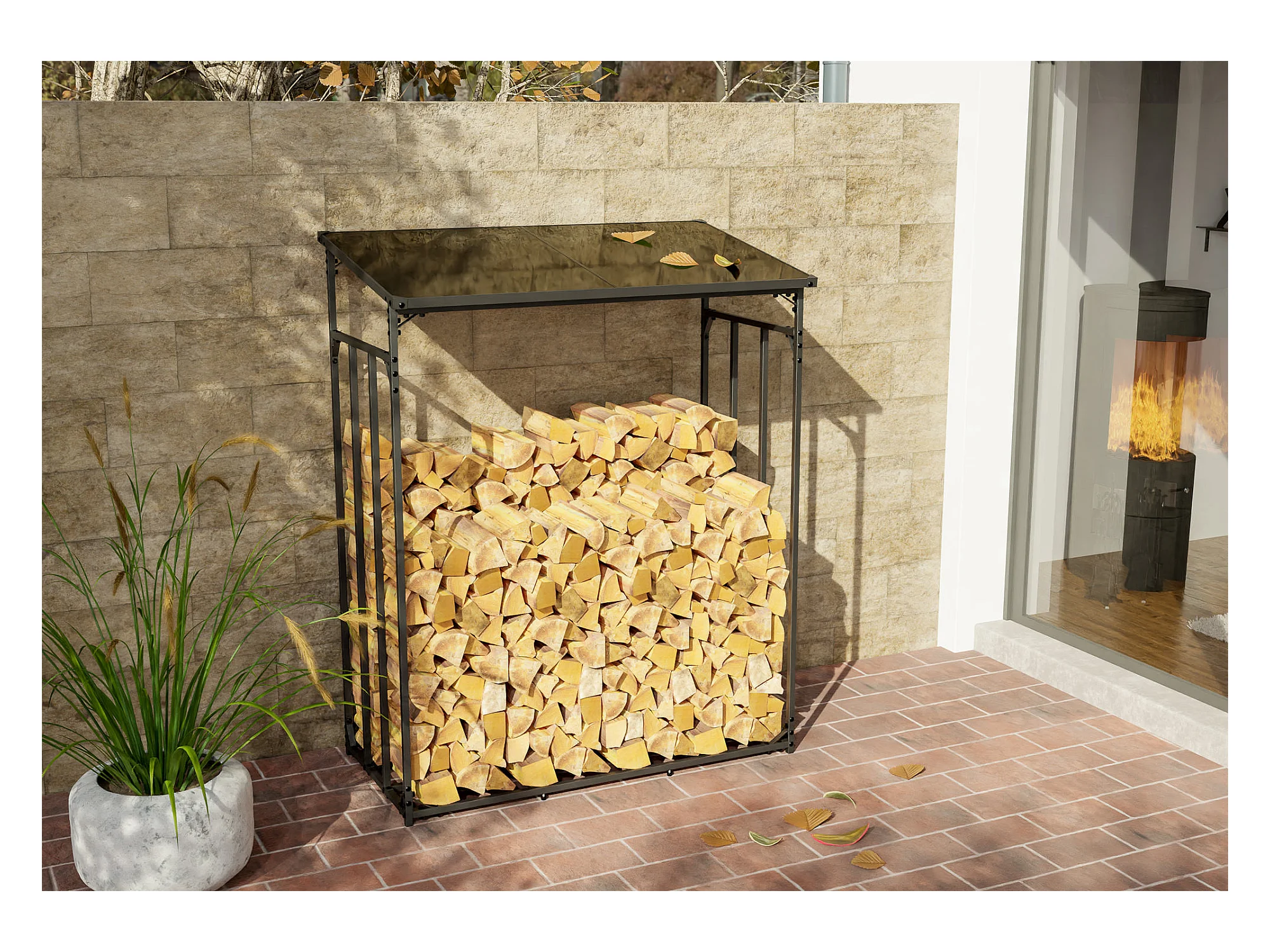 Etagère bois de cheminée - Métal - 120 x 36 x 120cm - Anthracite - Wilster