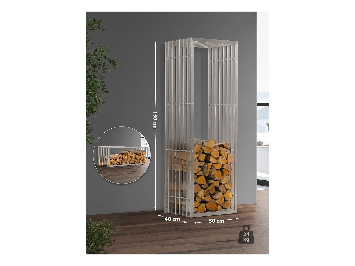 Etagère bois de cheminée - Acier inoxydable - 25x80x150 cm - Acier inoxydable - Keri V2