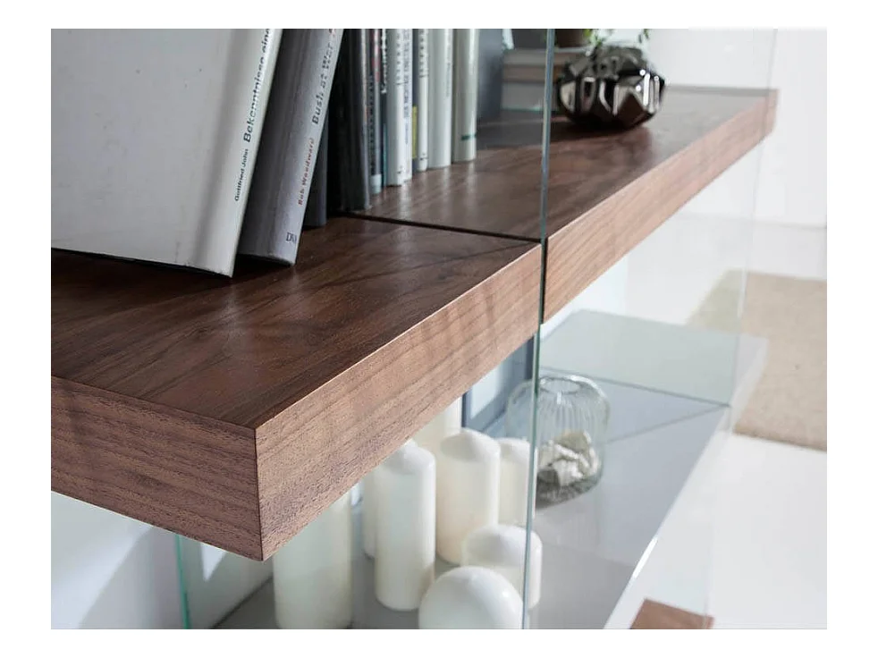 Bibliothèque 4 niveaux laqué blanc brillant et noyer Pilari