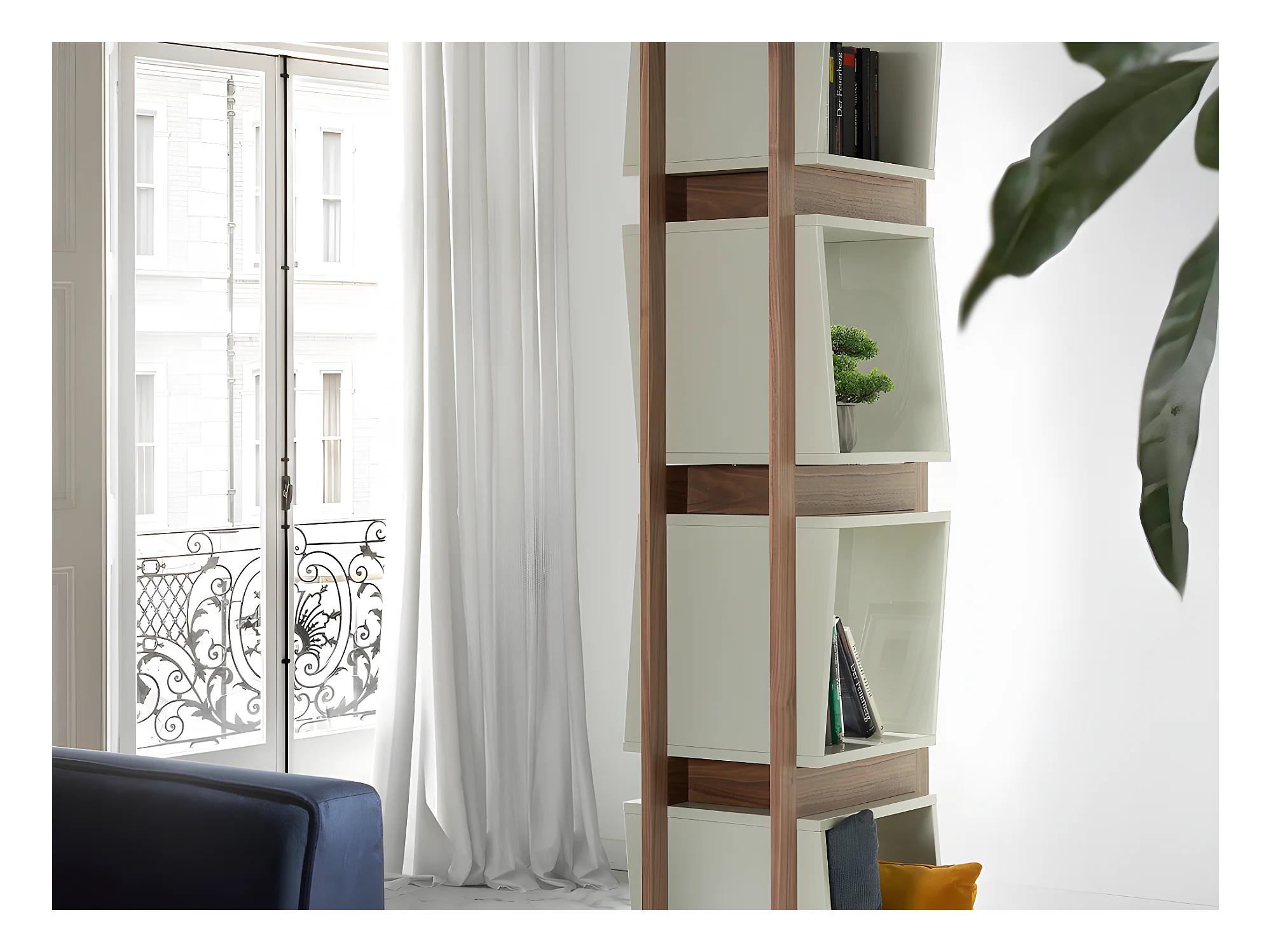 Étagère contemporaine bois noyer et laqué Muza-Couleur Rouge