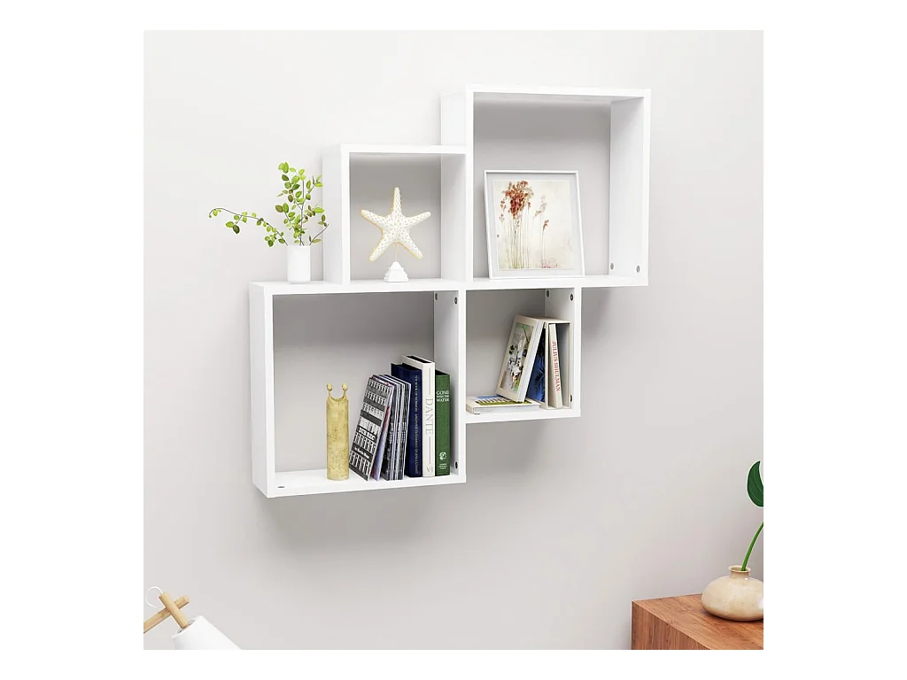 Étagères cube murales 4 pcs Blanc 80x15x26,5 cm Aggloméré OFR31302 BonneVie Meuble