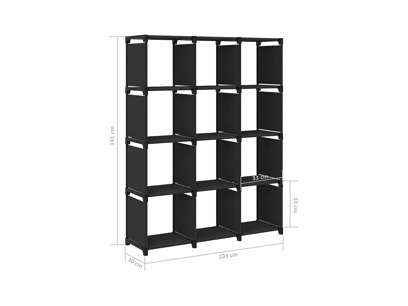Étagère d'affichage 12 cubes Noir 103x30x141 cm Tissu