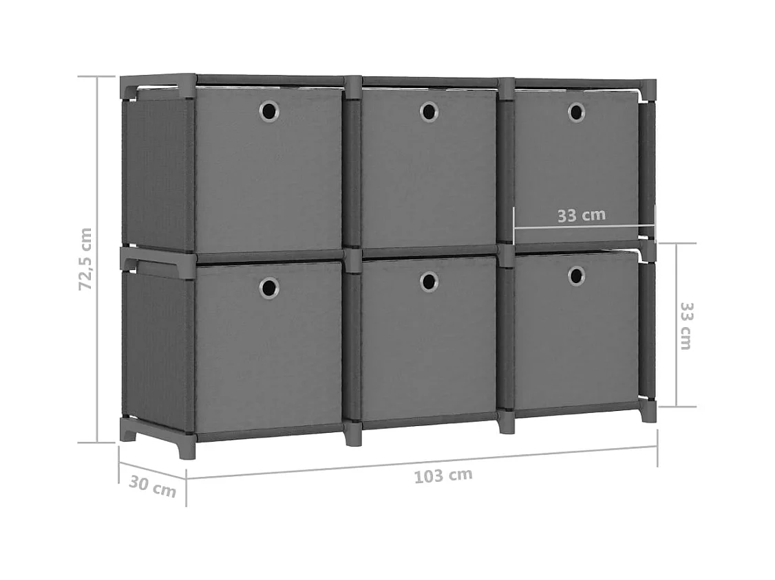 Étagère d'affichage 6 cubes et boîtes Gris 103x30x72,5 cm Tissu