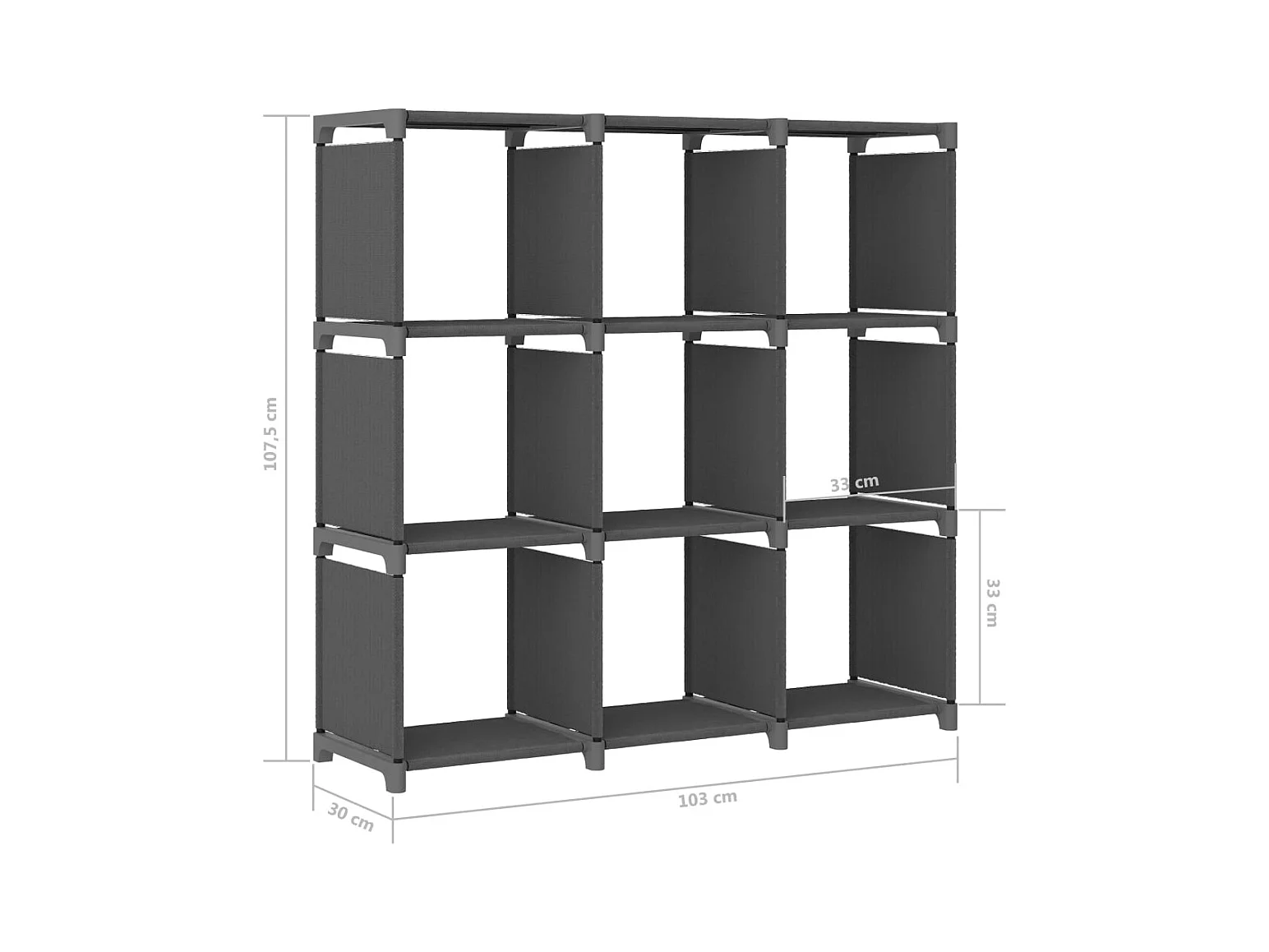 Étagère d'affichage 9 cubes Gris 103x30x107,5 cm Tissu