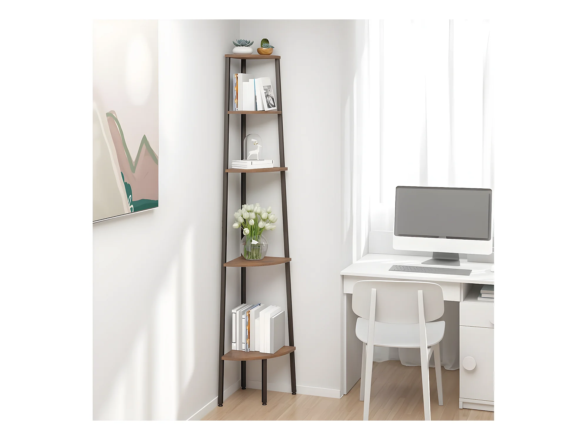Étagère d'angle 4 niveaux Marron clair et noir 45,5x31,5x150 cm