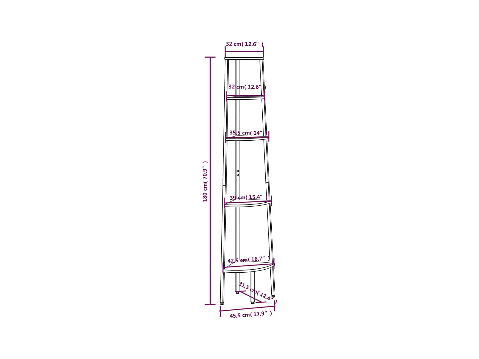 Étagère d'angle 4 niveaux Marron foncé et noir 45,5x31,5x150 cm