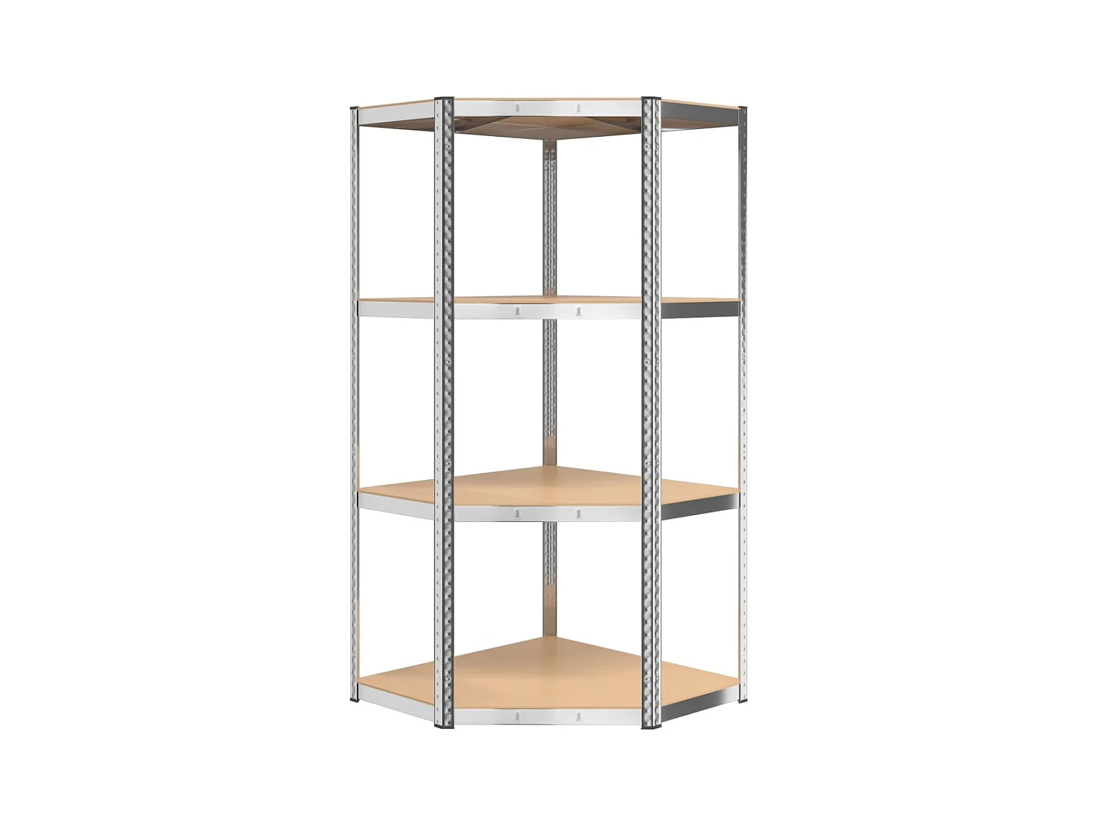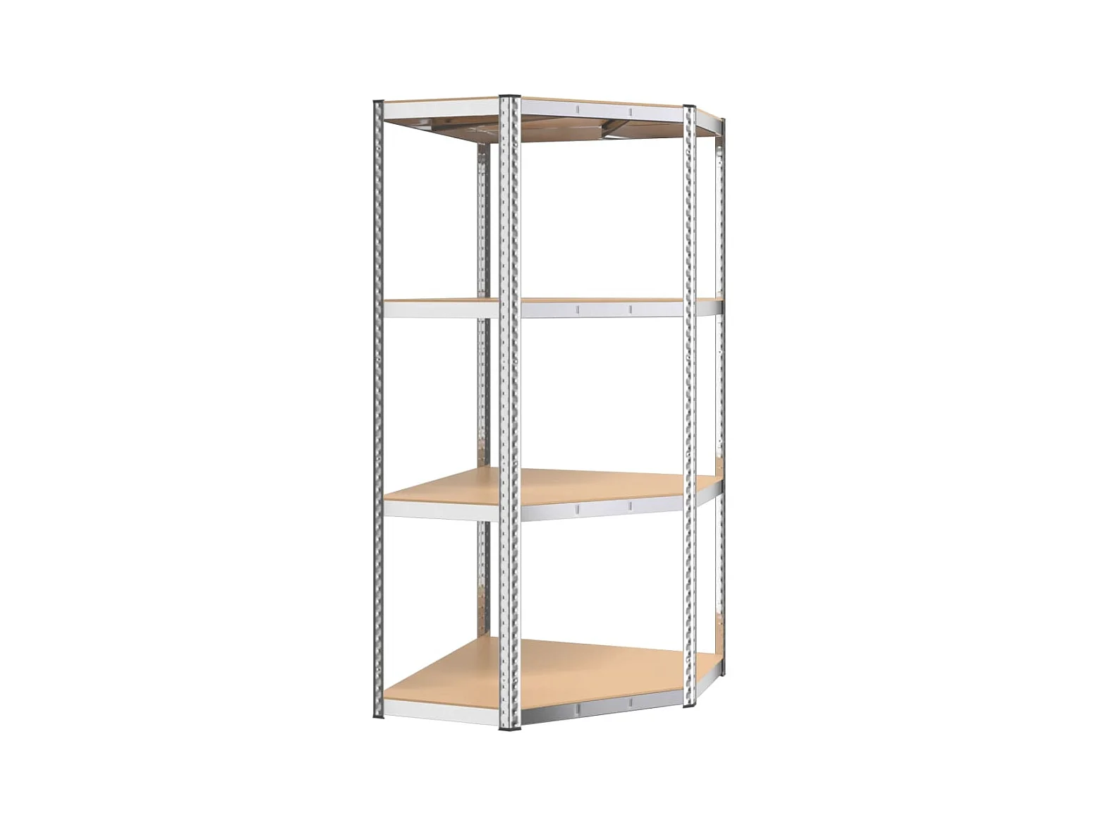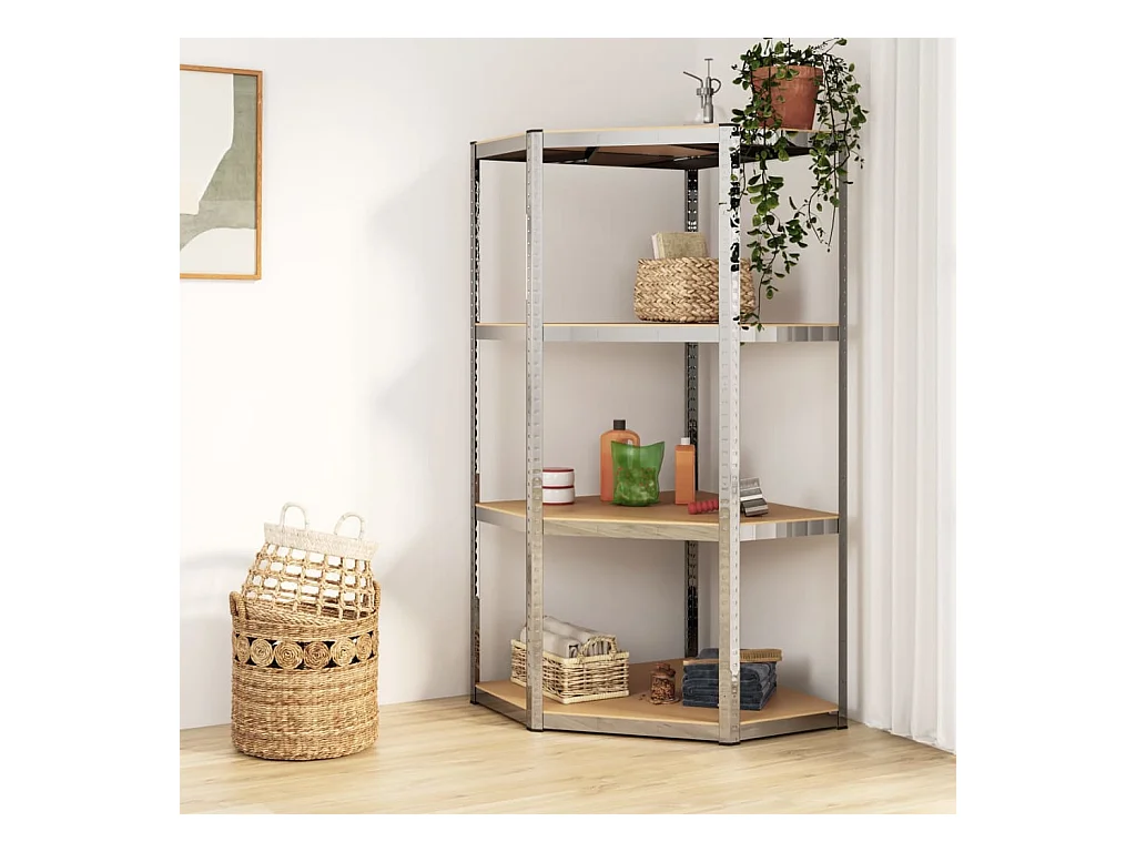 Étagère d'angle à 4 niveaux Argenté Acier et bois d'ingénierie OFR22294 BonneVie Meuble