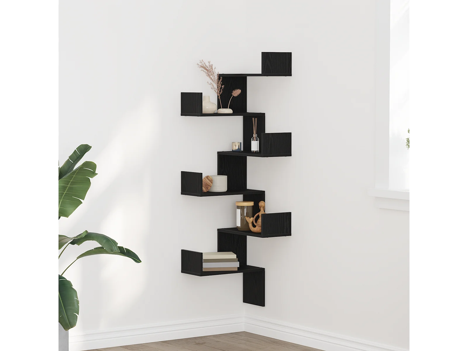 Étagère d'angle Bois noir 45x45x147 cm en bois d'ingénierie