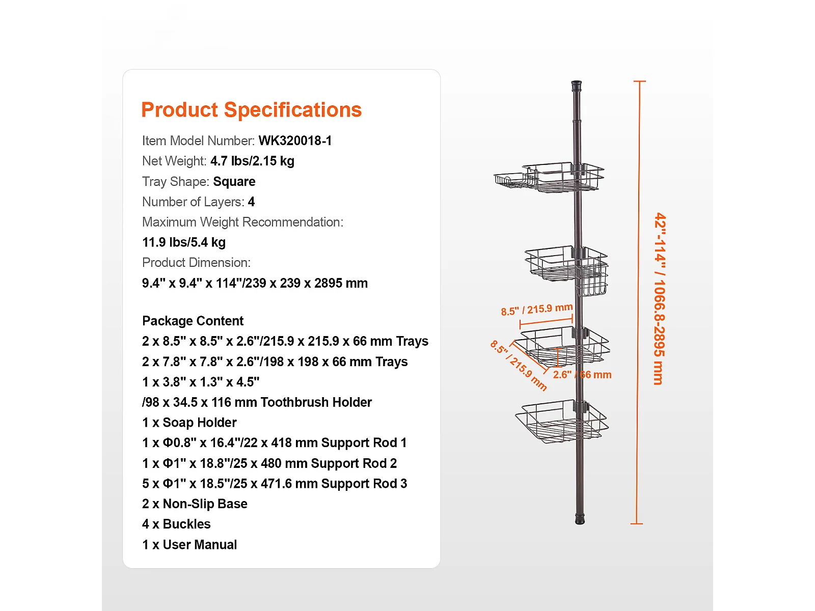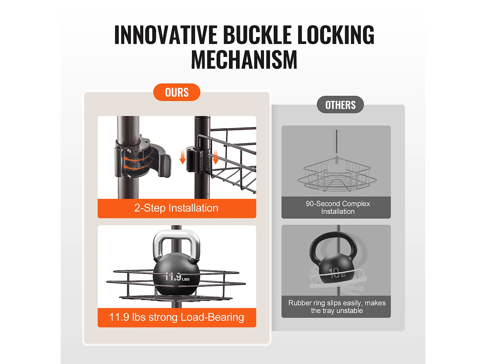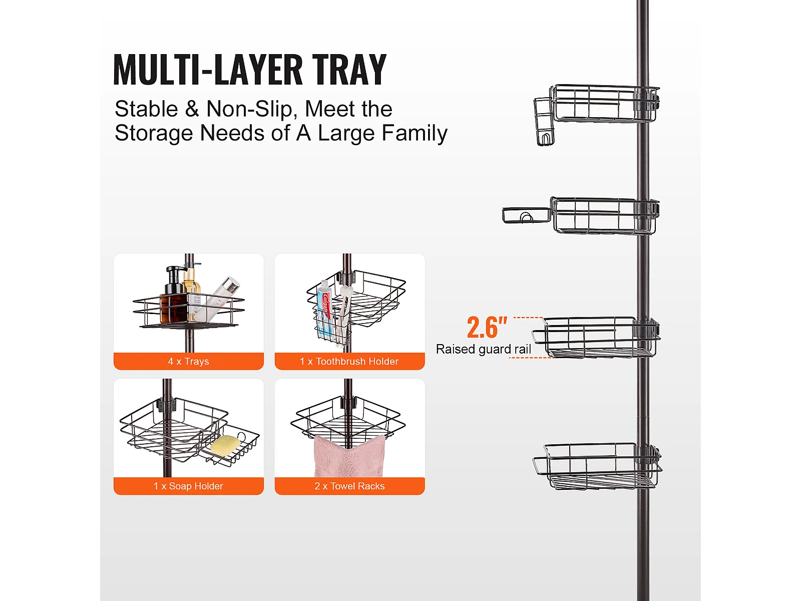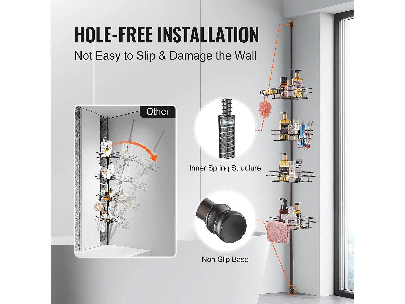 Étagère d'Angle de Douche SucceBuy Poteau de Tension pour Panier de Douche d'Angle de 1.06 m à 2.90 m, Antirouille