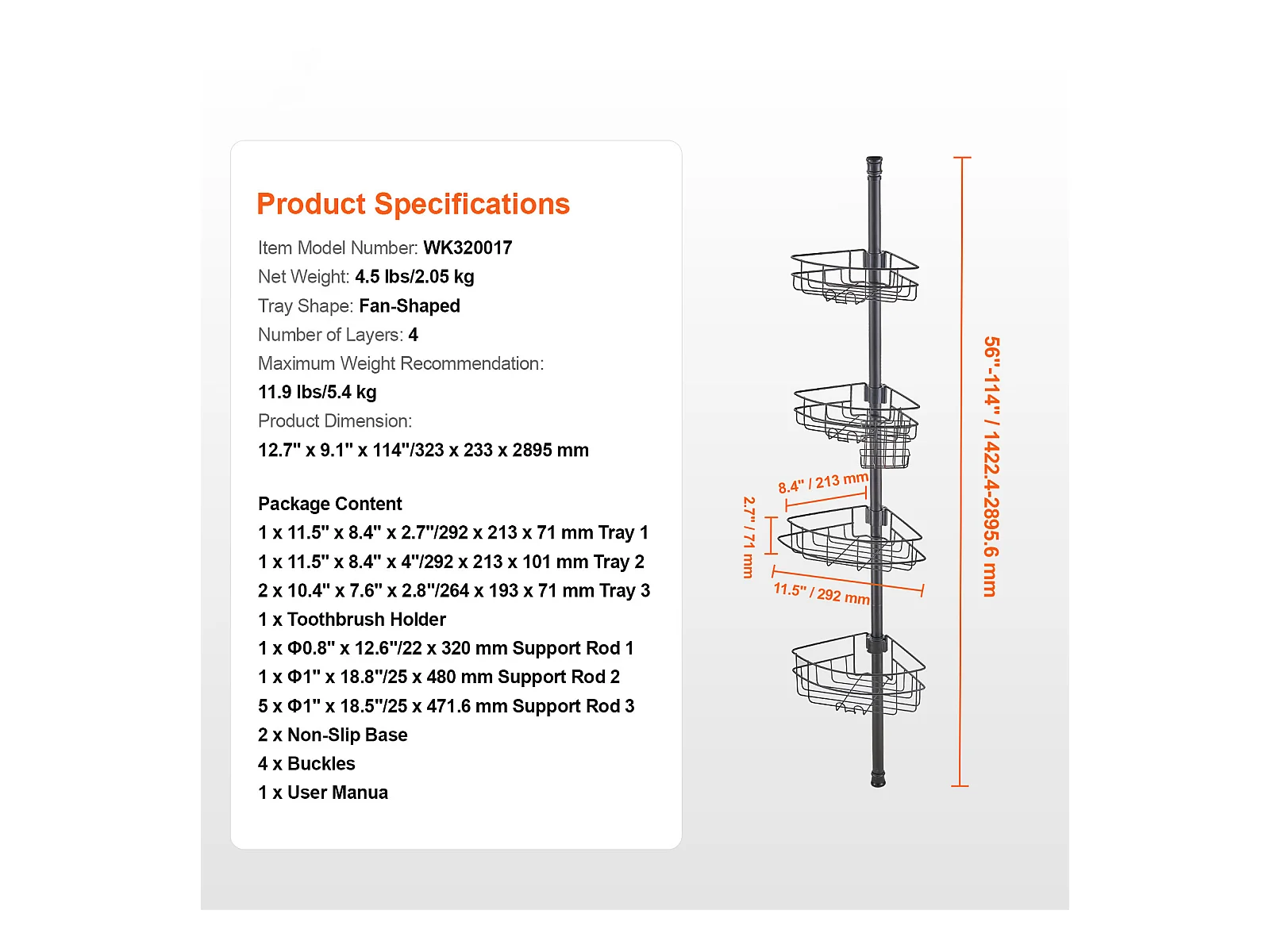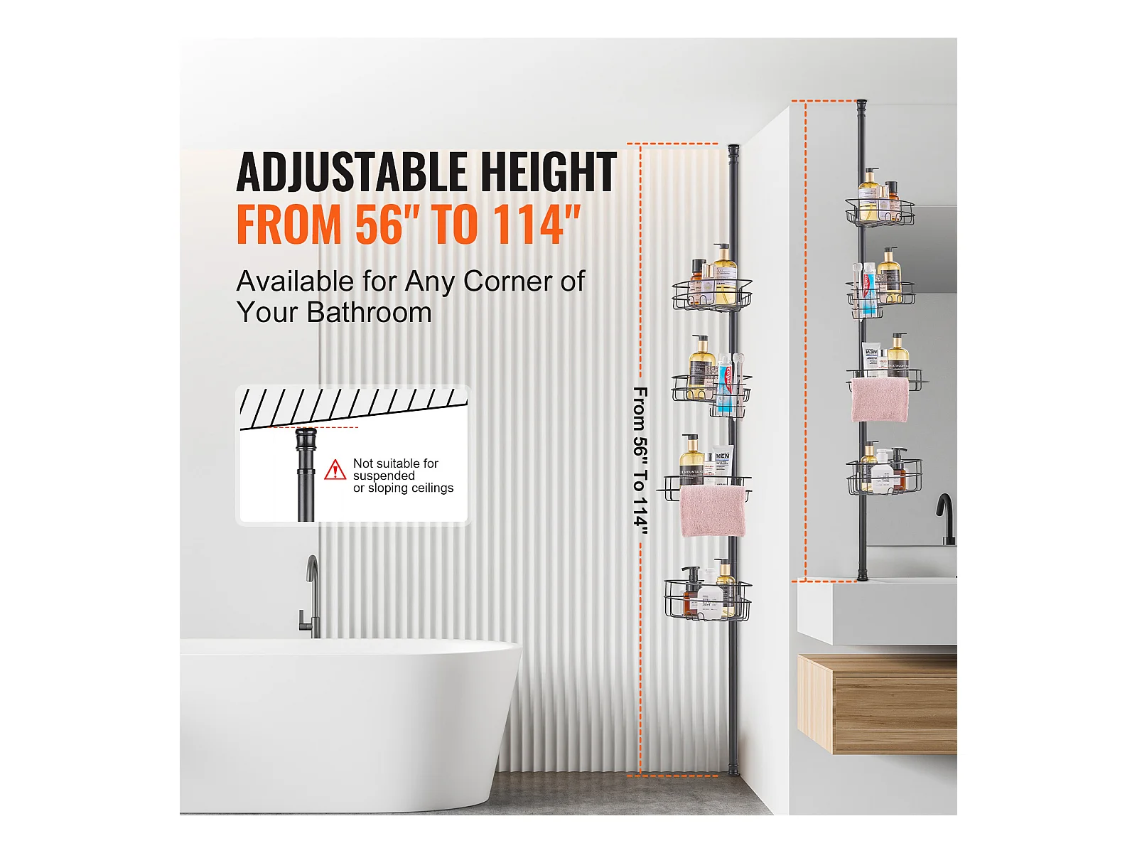 Étagère d'Angle de Douche SucceBuy Poteau de Tension pour Panier de Douche d'Angle de 0.99 m à 3.17 m, Antirouille