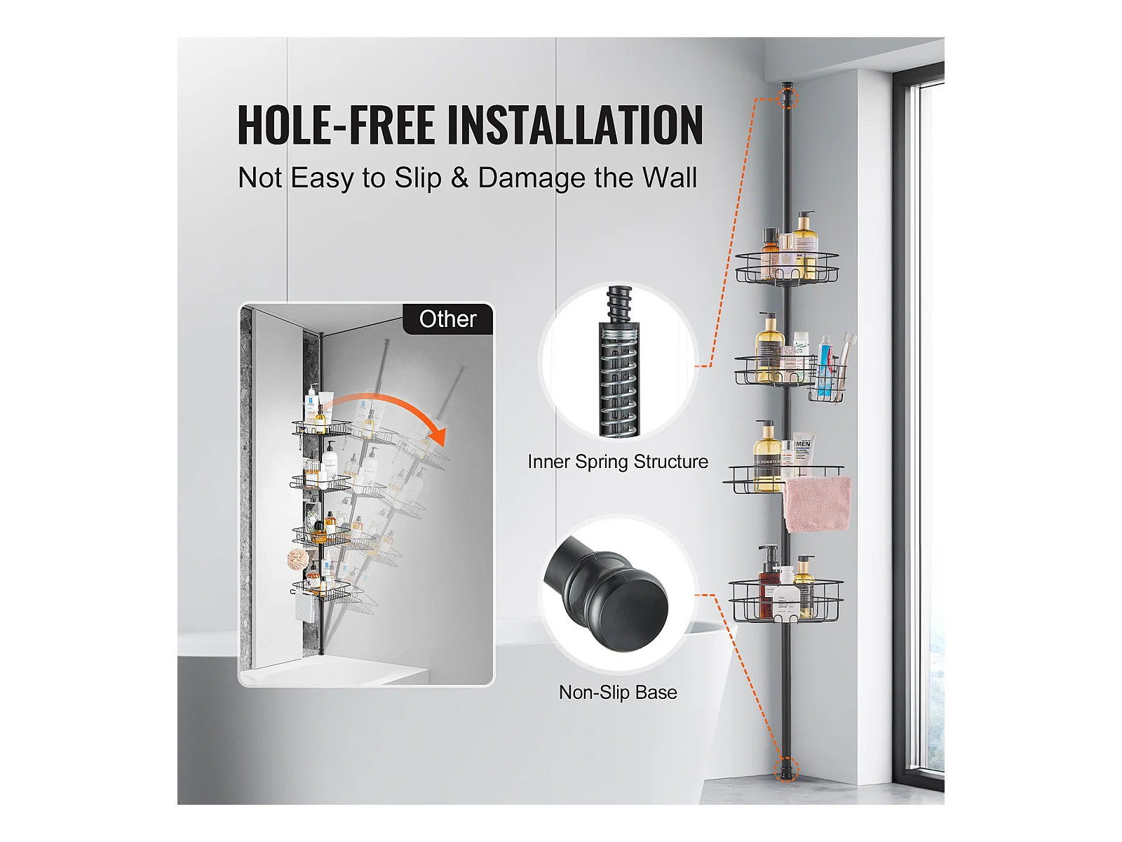 Étagère d'Angle de Douche SucceBuy Poteau de Tension pour Panier de Douche d'Angle de 1.06 m à 2.90 m de Hauteur, Antirouille